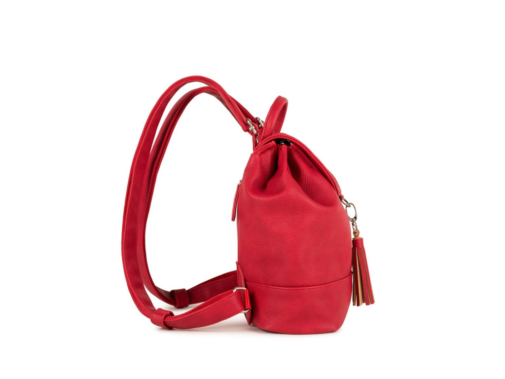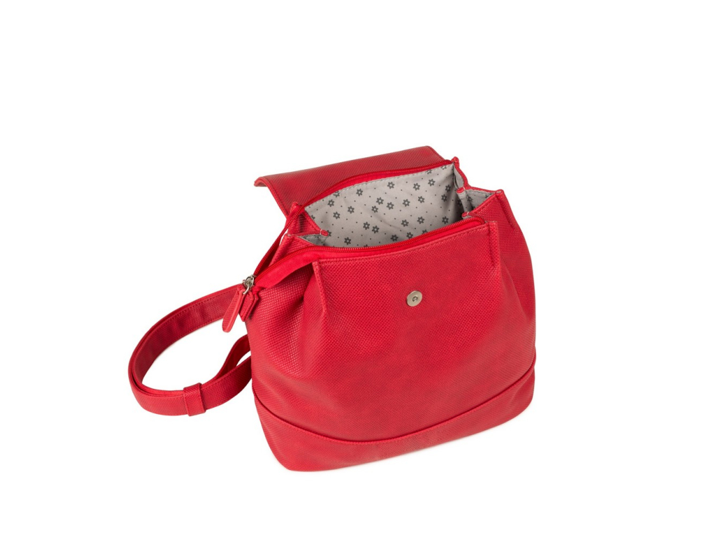Batoh z kolekce CONNY CYR8 je malý batoh, který pojme věci o objemu 5 l. Batoh má hlavní příhrádku, která se otevírá pomocí zipu a vnitřní přihrádku. Batoh CONNY CYR8 má vnitří uspořádání s jemně vzorovanou květinovou podšívkou a velmi pohodlné zadní polstrování. Malou nečistotu můžete snadno otřít vlhkým hadříkem.