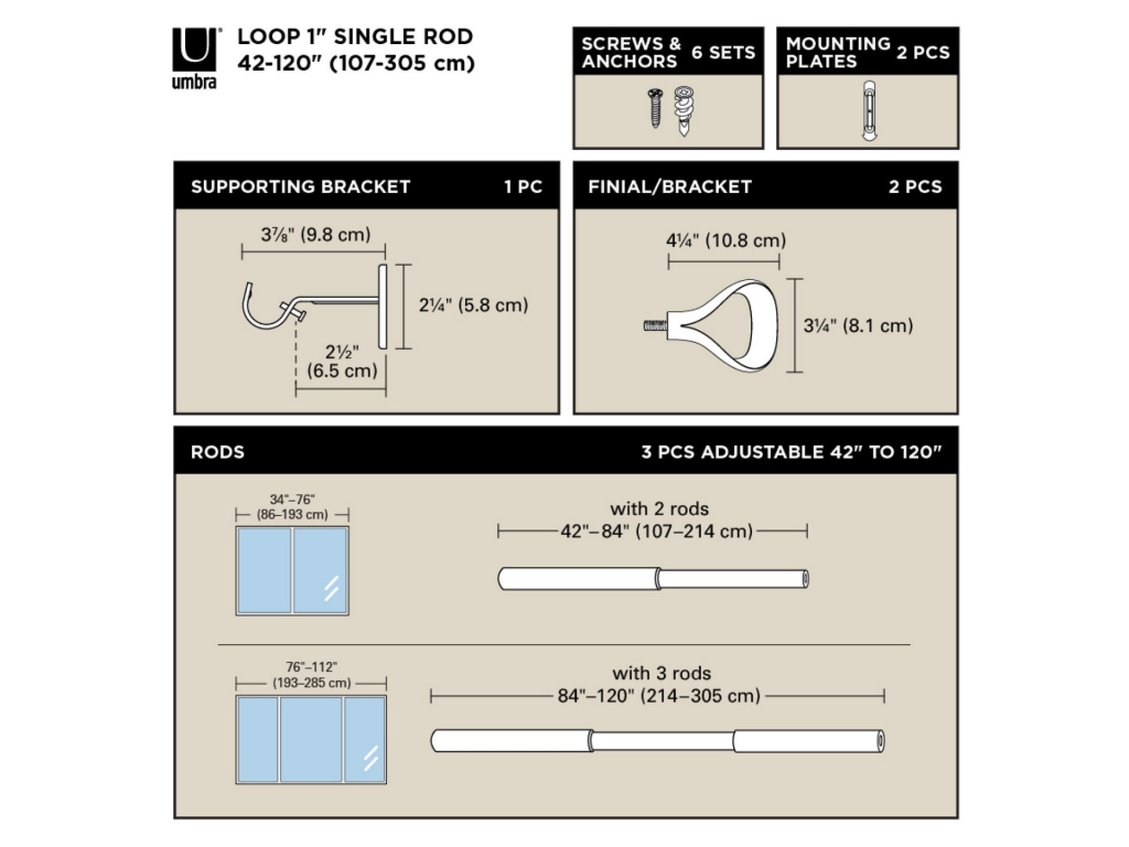 Umbra Loop garnýž dodá vašim oknům moderní a nápaditý vzhled. Kovové koncovky ve tvaru smyček působí elegantně a originálně. Díky teleskopické konstrukci se garnýž snadno přizpůsobí šířce vašeho okna a pevná ocelová tyč unese i těžší závěsy.