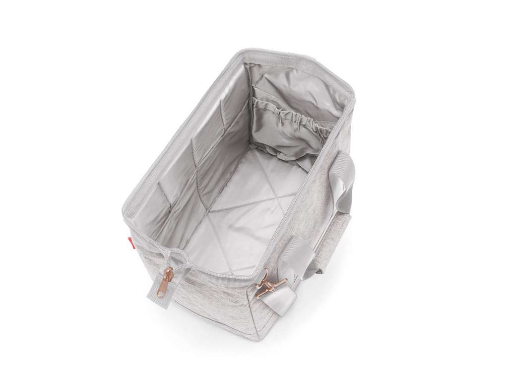 Cestovní taška Allrounder M od Reisenthel Vás bude doprovázet na každé cestě. Vhodná je opravdu pro každou příležitost: do knihovny, na nákupy, na cvičení i na výlety. Allrounder M je velmi elegantní a pyšnit se může skutečně funkčním designem.Cestovní taška Allrounder M má dvě odolná kovová ramena zašitá ve švu. Díky tomu se velmi snadno otevírá. Možnost dobrého otevření Vám odhalí jednotlivé přihrádky a Vy budete mít neustále dokonalý přehled o obsahu tašky.