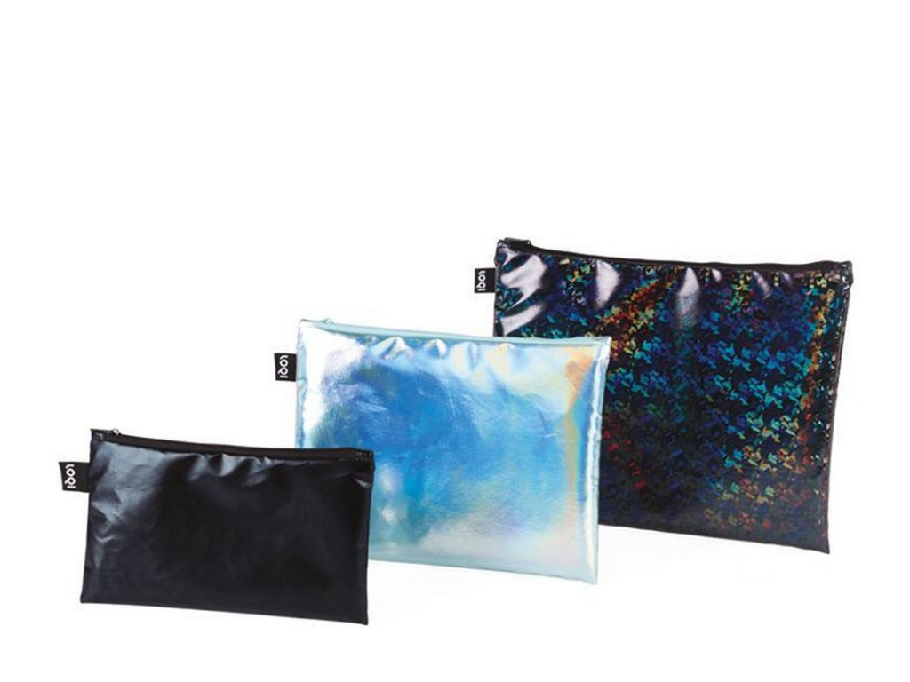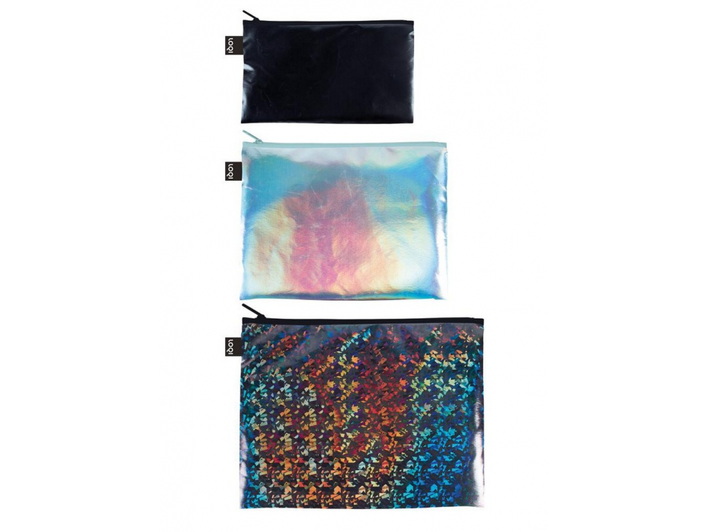 Cestovní taštičky na zip LOQI METALLIC Black, Pearl, Prism, 3 ks
