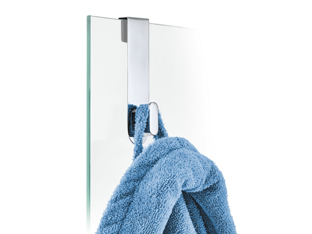 Háček na dveře AREO je elegantní a moderní háček od značky Blomus. Je vyroben z leštěné nerezové oceli a plastu. Jednoduše ho zavěsíte na skleněné dvěře nebo sprchový panel. Zadní strana má silikonovou podložku, která zabraňuje poškrábání a udržuje háček pevně na svém místě. Díky praktickému háčku už nebudou ručníky mokré a ležet na zemi, navíc dodá Vaší koupelně eleganci. Tento háček je vhodný na všechny skleněné dveře ve Vašem interiéru. K dostání je i v matné nerezové oceli. K dispozici je celá kolekce AREO s dalšími doplňky do koupelny.