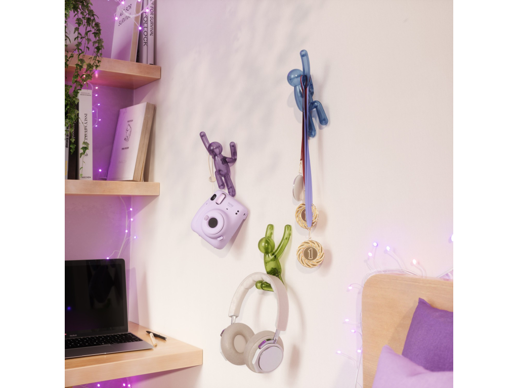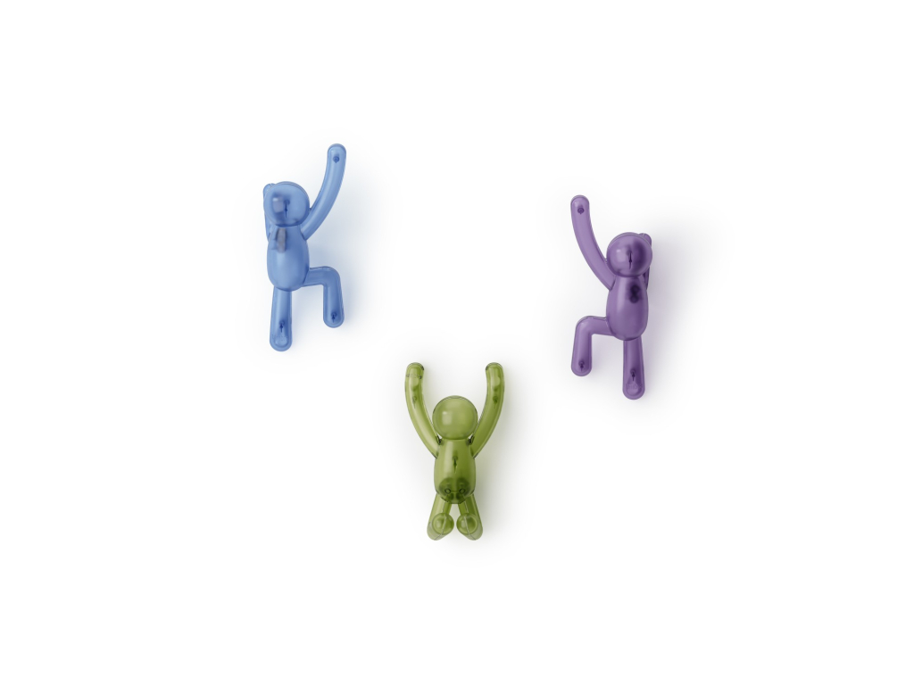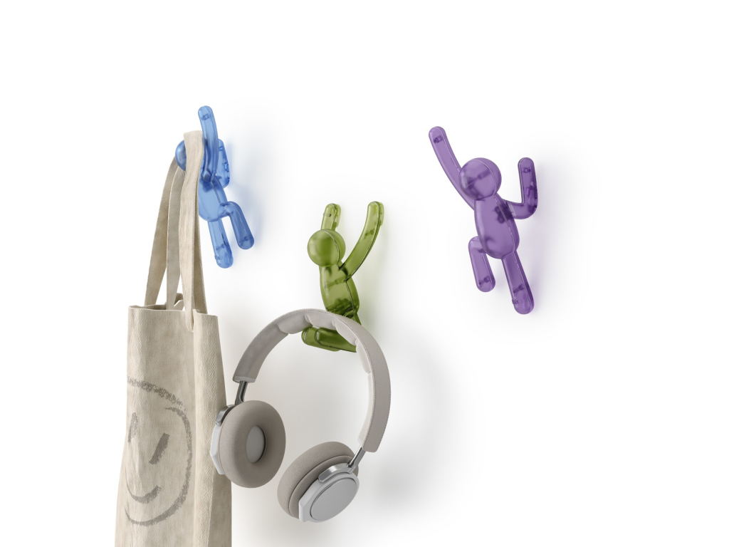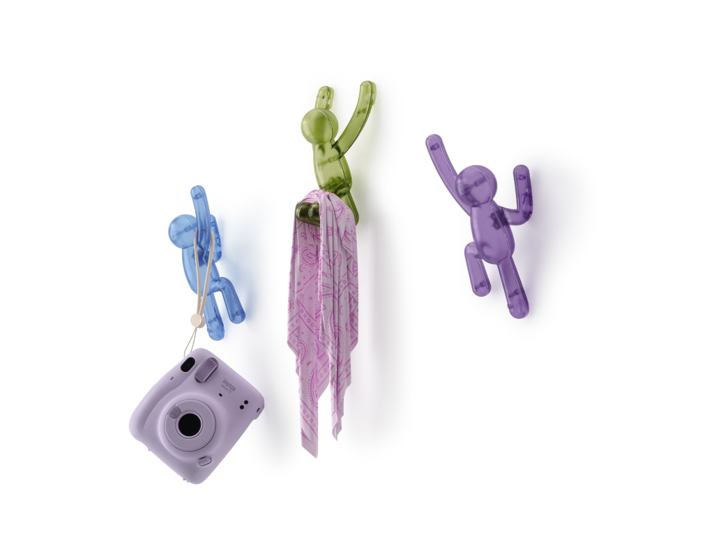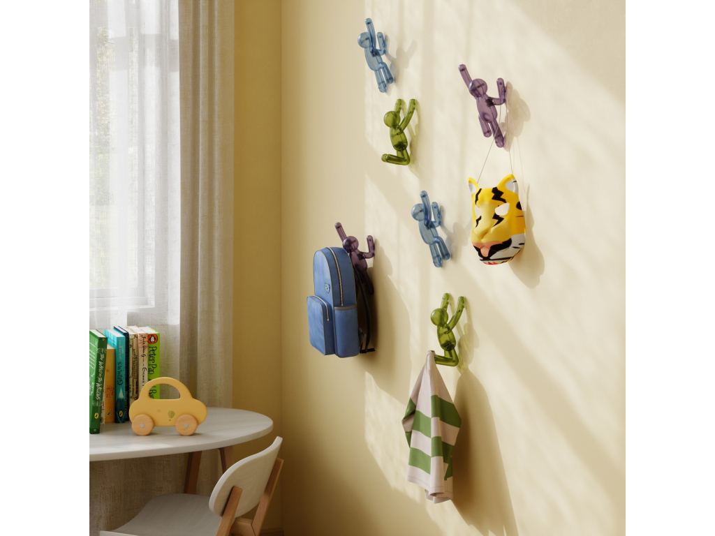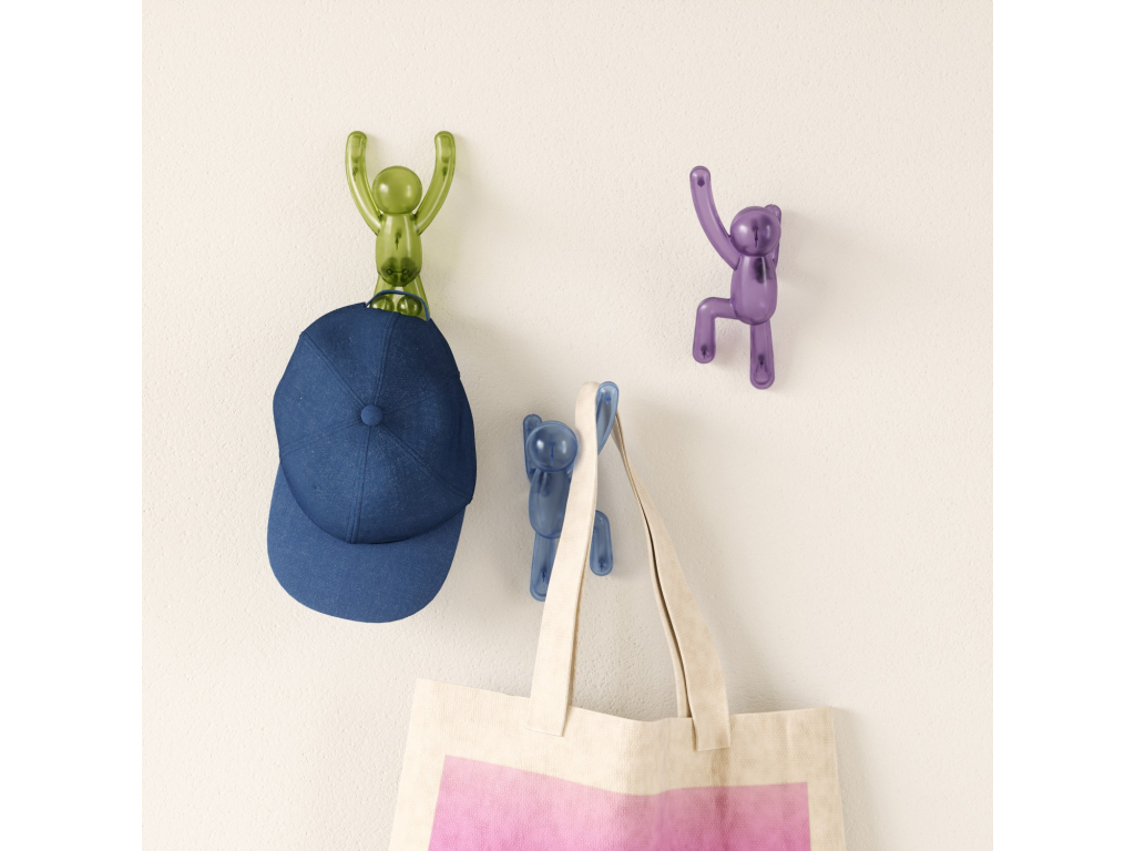 Umbra Buddy Wall Hooks jsou originální nástěnné háčky, které kombinují zábavu, styl i praktičnost. Postavičky Buddy „šplhající po zdi“ nejen rozveselí prostor, ale také poslouží jako funkční věšáky pro oblečení, tašky, ručníky či doplňky. Každý háček unese až 2,3 kg (5 lbs) a díky pevnému uchycení na zeď je ideální do předsíně, koupelny, dětského pokoje nebo kanceláře. Pokud se zrovna nepoužívají, zůstávají stylovým designovým doplňkem, který okamžitě zaujme každého návštěvníka. Vyrobeno z recyklovaných plastů.