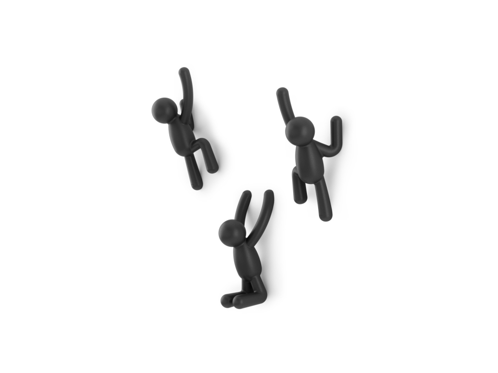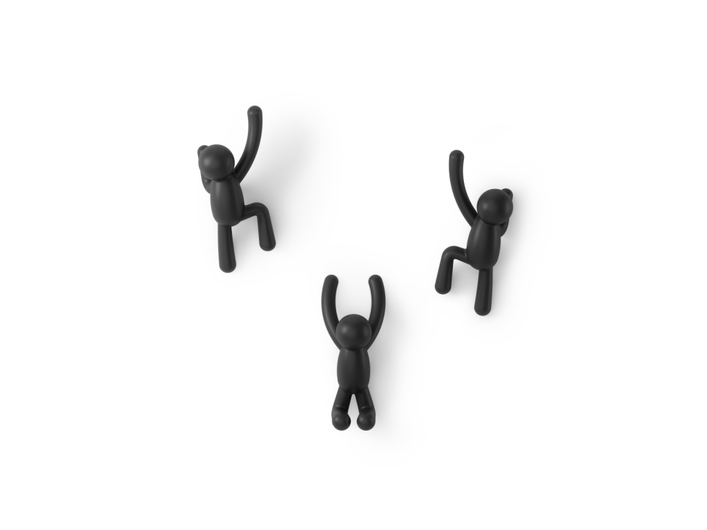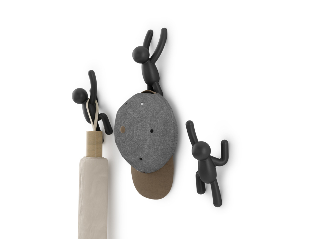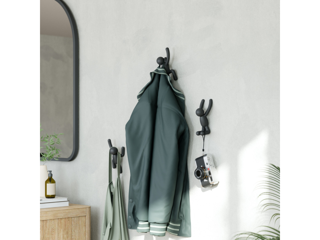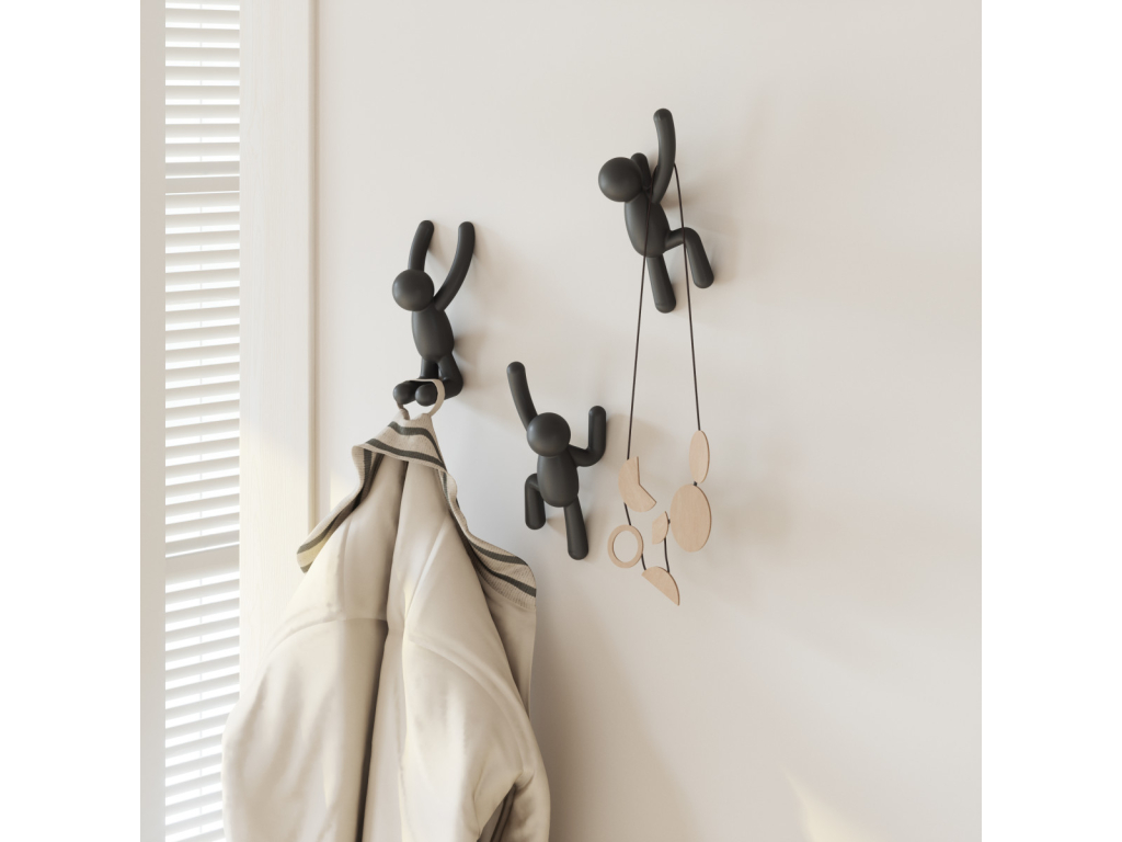Umbra Buddy Wall Hooks jsou originální nástěnné háčky, které kombinují zábavu, styl i praktičnost. Postavičky Buddy „šplhající po zdi“ nejen rozveselí prostor, ale také poslouží jako funkční věšáky pro oblečení, tašky, ručníky či doplňky. Každý háček unese až 2,3 kg (5 lbs) a díky pevnému uchycení na zeď je ideální do předsíně, koupelny, dětského pokoje nebo kanceláře. Pokud se zrovna nepoužívají, zůstávají stylovým designovým doplňkem, který okamžitě zaujme každého návštěvníka. Vyrobeno z recyklovaných plastů.