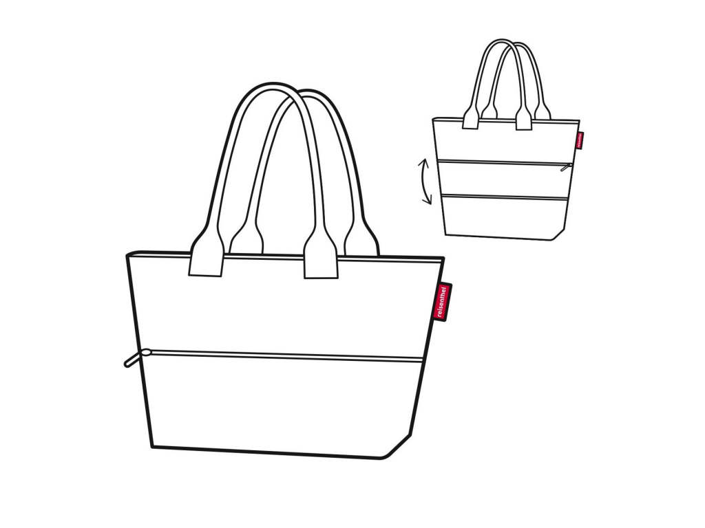 Nákupní kabelka = taška na nákupy Shopper e1 od Reisenthel je připravena pojmout menší nákupy do objemu 12 l, nebo 18 l po úplném rozložení. Kabelka, taška na nákupy Shopper e1 má vnitřní kapsu na zip. Tuto tašku módní tašku můžete nosit v ruce i přes rameno, vždy ve dvou možných velikostech. Geniální zip po straně kabelky Shopper zvýší objem tašky na 18 l.