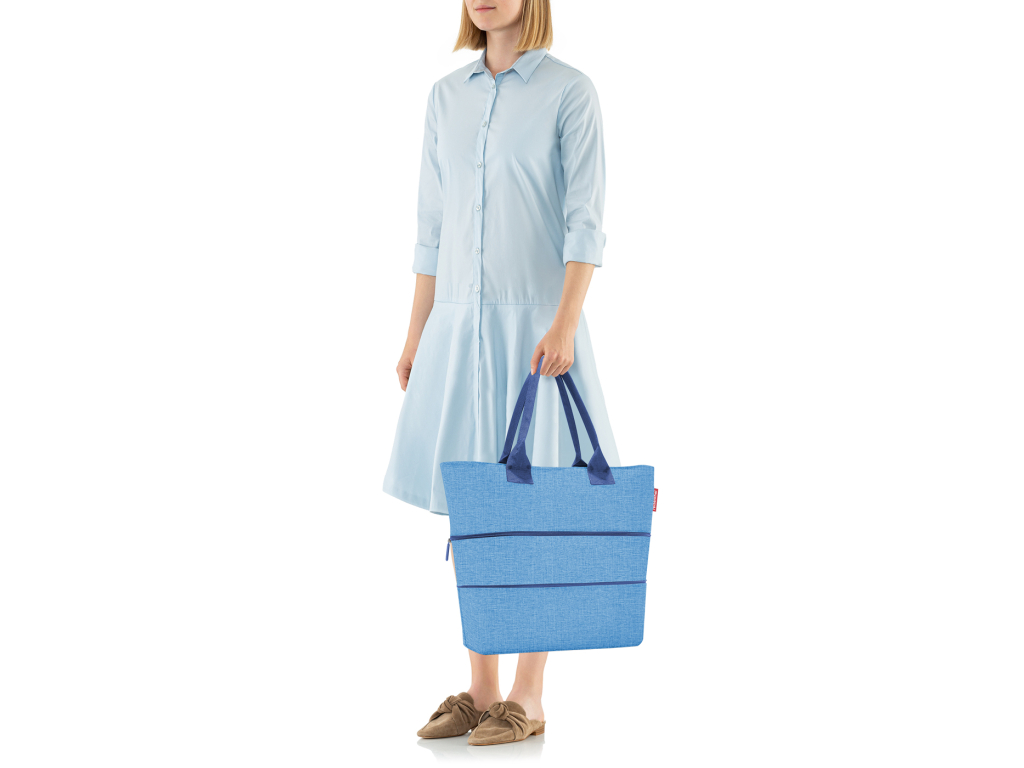 Nákupní kabelka = taška na nákupy Shopper e1 od Reisenthel je připravena pojmout menší nákupy do objemu 12 l, nebo 18 l po úplném rozložení. Kabelka, taška na nákupy Shopper e1 má vnitřní kapsu na zip. Tuto tašku módní tašku můžete nosit v ruce i přes rameno, vždy ve dvou možných velikostech. Geniální zip po straně kabelky Shopper zvýší objem tašky na 18 l.