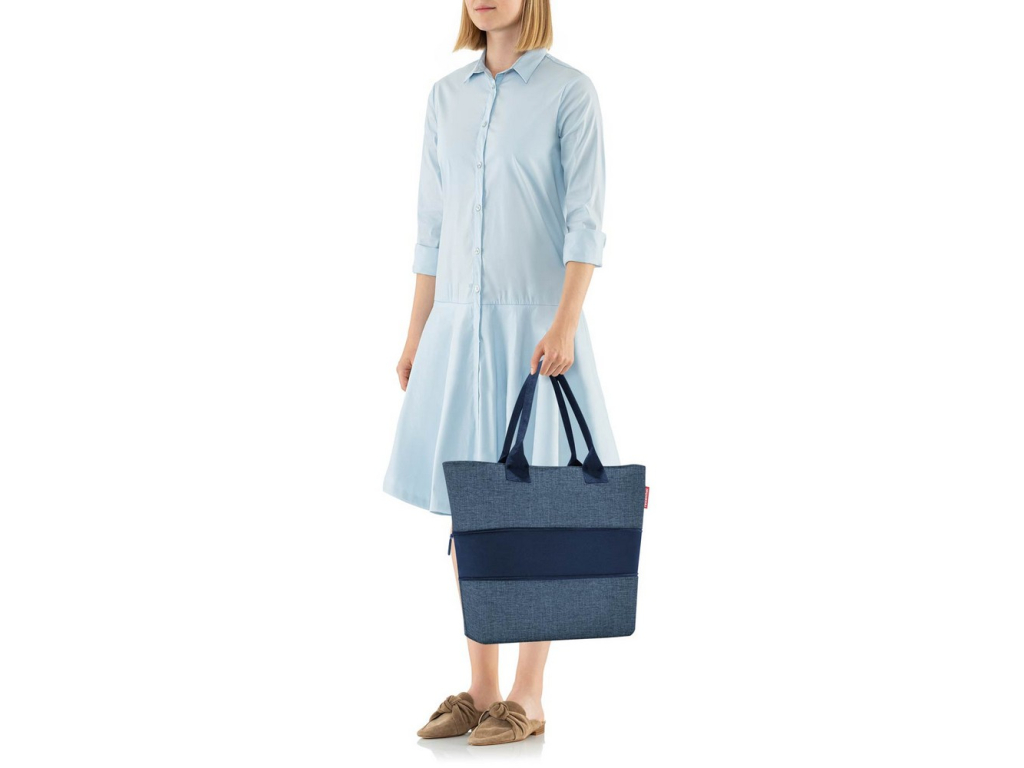 Nákupní kabelka = taška na nákupy Shopper e1 od Reisenthel je připravena pojmout menší nákupy do objemu 12 l, nebo 18 l po úplném rozložení. Kabelka, taška na nákupy Shopper e1 má vnitřní kapsu na zip. Tuto tašku módní tašku můžete nosit v ruce i přes rameno, vždy ve dvou možných velikostech. Geniální zip po straně kabelky Shopper zvýší objem tašky na 18 l.
