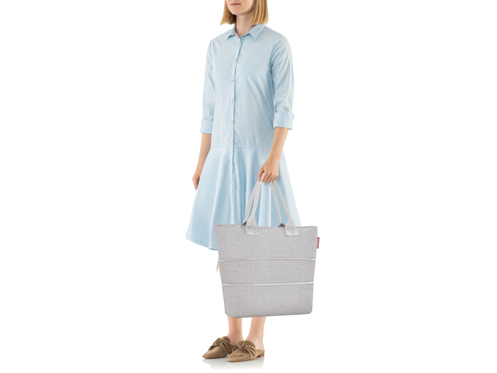 Nákupní kabelka = taška na nákupy Shopper e1 od Reisenthel je připravena pojmout menší nákupy do objemu 12 l, nebo 18 l po úplném rozložení. Kabelka, taška na nákupy Shopper e1 má vnitřní kapsu na zip. Tuto tašku módní tašku můžete nosit v ruce i přes rameno, vždy ve dvou možných velikostech. Geniální zip po straně kabelky Shopper zvýší objem tašky na 18 l.