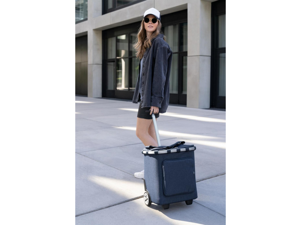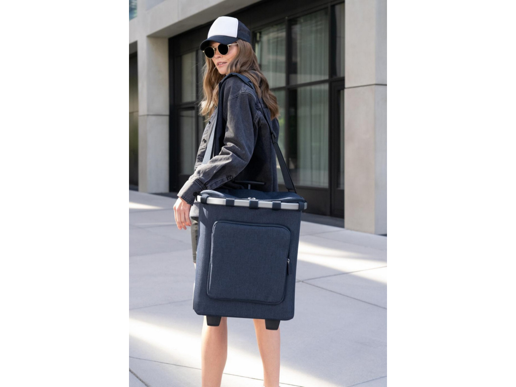 Nákupní košík na kolečkách Carrycruiser plus od Reisenthel je žhavou novinkou a absolutním hitem této sezóny. Nakupování už nemůže být pohodlnější! Nákupní vozík Carrycruiser plus je vyrobený z recyklovaných PET lahví a zaujme Vás ještě větším prostorem a funkčností. Díky rozkládací tepelné příhrádce, která je umístěna v přední části budete mít potraviny krásně oddělené a vychlazené než dorazíte domů. Je moderní, neskutečně praktický a prostě IN. Nákupní košík na kolečkách Carrycruiser plus promění i velké nákupy v zábavu. S větším objemem 46 litrů. Má oboustranně uzavíratelné víko. Díky kolečkům se nemusíte tahat s těžkými taškami, praktická teleskopická rukojeť má 3 polohy a zjednoduší manipulaci. Pomocí klipů lze Carrycruiser plus pohodlně připevnit přímo do klasického nákupního košíku. Po jeho vyjmutí z košíku, můžete Carrycruiser plus nosit jako brašnu přes rameno, díky popruhu.
