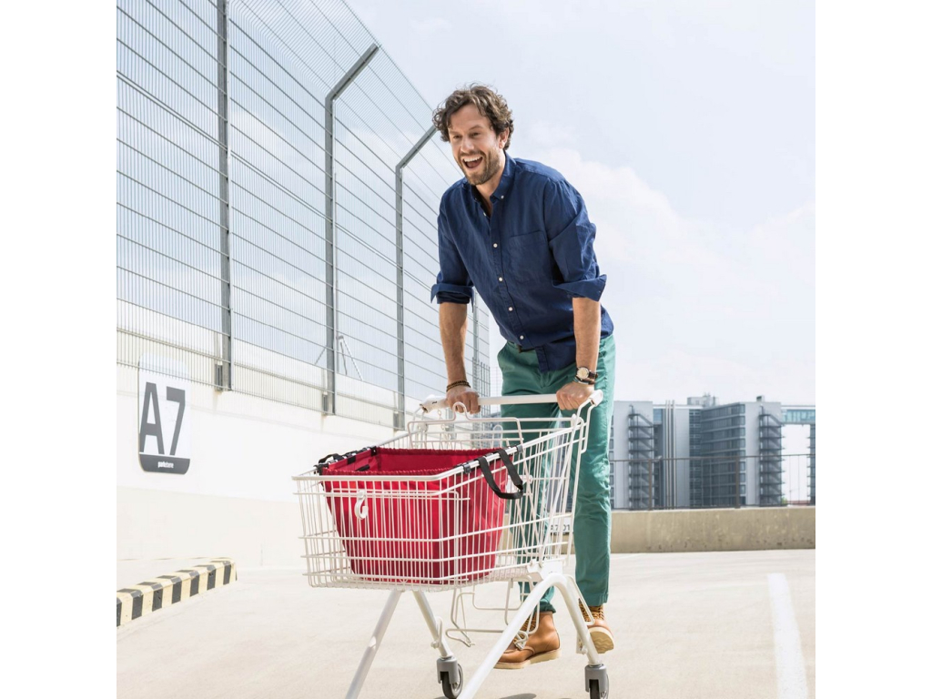 Vydejte se na úspěšný lov mezi regály supermarketu s praktickou nákupní taškou Easyshoppingbag od Reisenthel.Poznejte půvab snadného nakupování s novou taškou do košíku od Reisenthel. Otevřenou tašku lze umístit na šířku klasického nákupního vozíku a snadno zaháknout po stranách.  Nákup můžete dávat rovnou do tašky. U pokladny jej na chvíli vyndáte a zase vrátíte zpět rvonou do tašky. Stačí zaklapnout dva hliníkové profily zavírání k sobě a odnést si celý nákup domů. Přes svůj velký objem 30 l a nosnost 15 kg, lze tašku složit do praktického balíčku o velikosti deštníku.