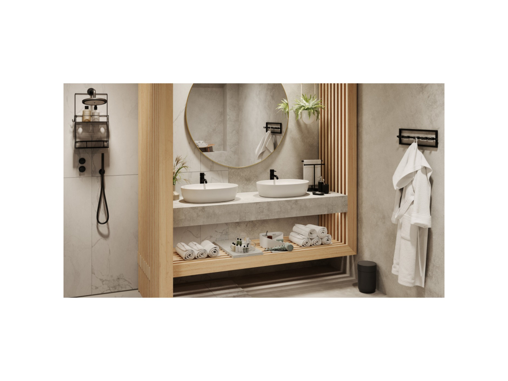 Hlavní přednosti:- Moderní minimalistický design – elegantní černý věšák s pěti pohyblivými háčky