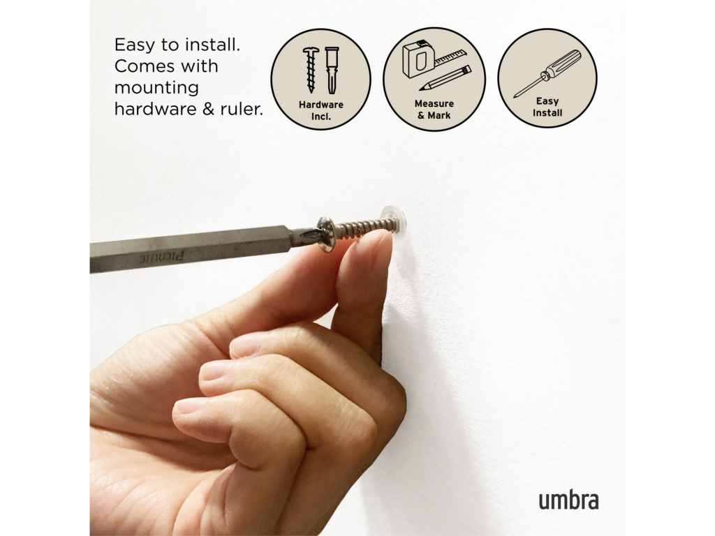 - Snadná montáž – obsahuje vše potřebné k upevnění na zeď