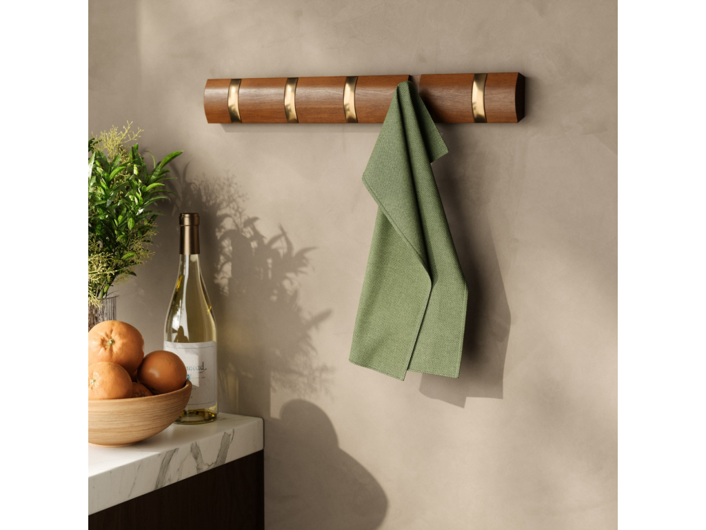 Nástěnný věšák 5 háčků Umbra FLIP - hnědý/zlatý
