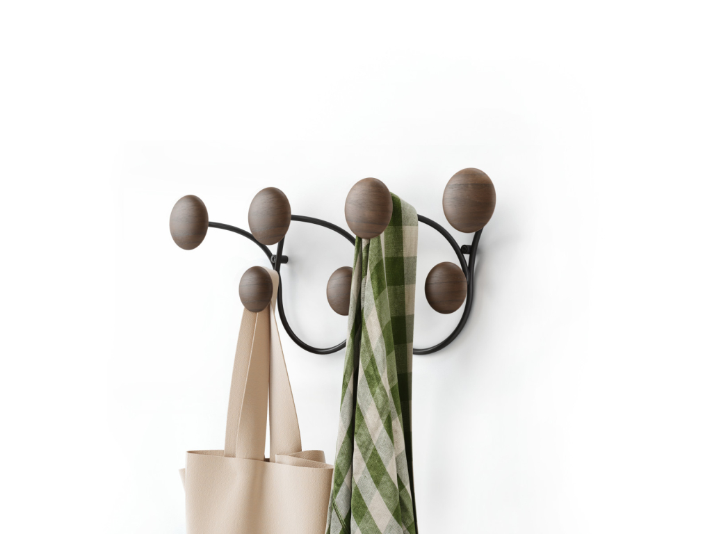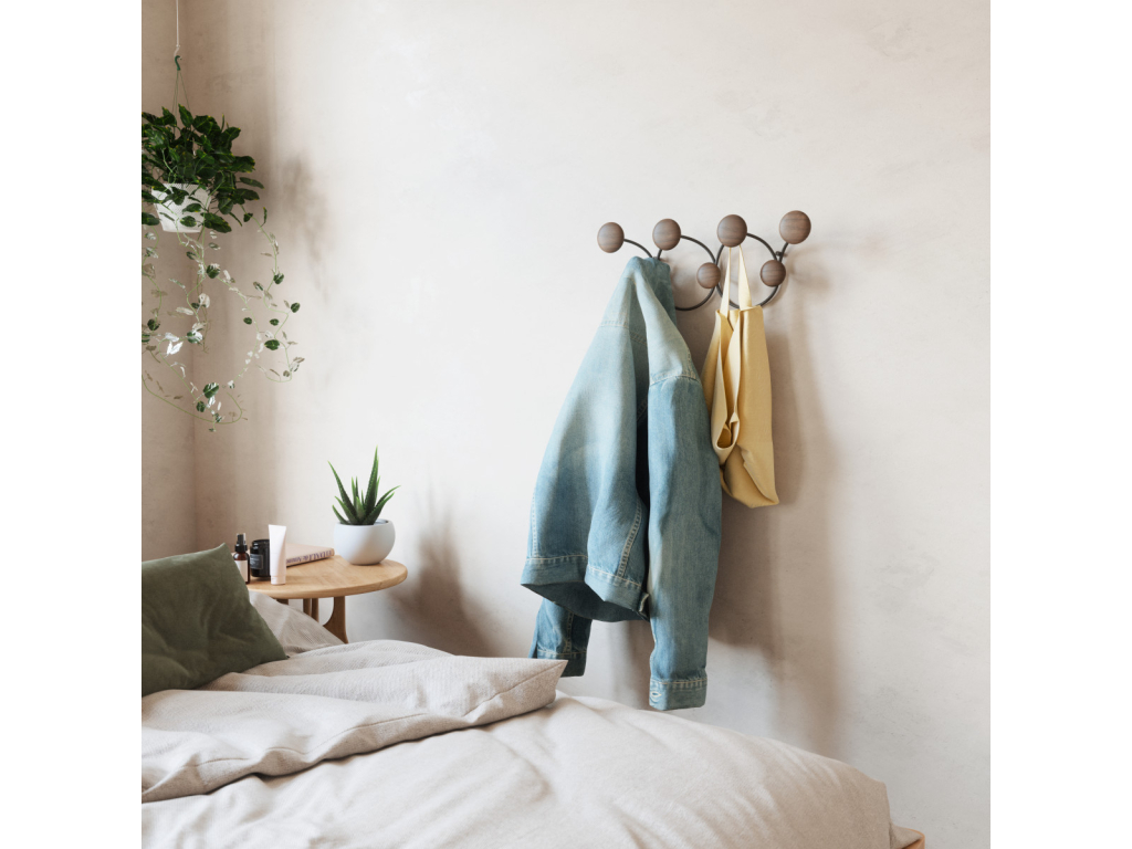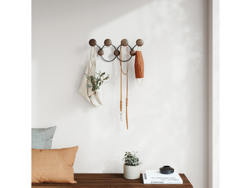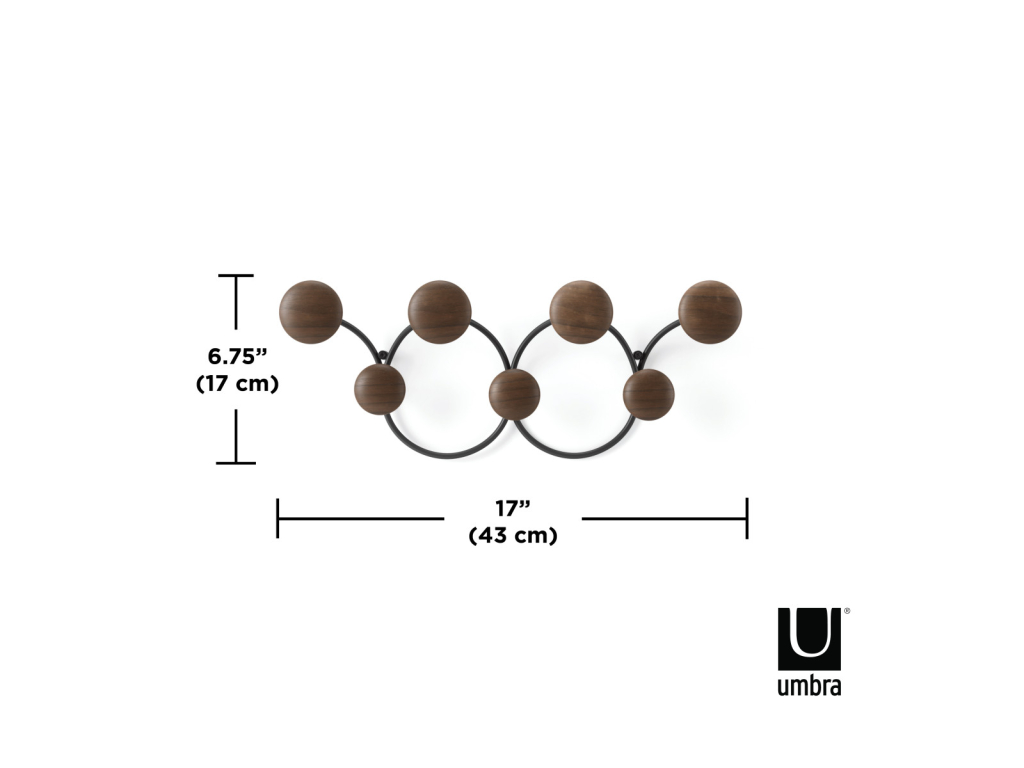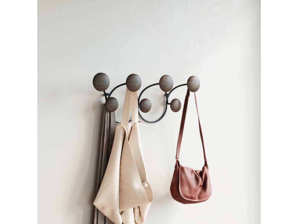 Nástěnný věšák 7 háčků Umbra DOTSY - černý/ořechový