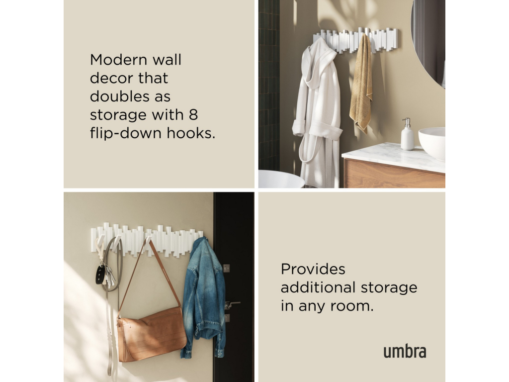 Nástěnný věšák s výklopnými háčky 8 Umbra Sticks - bílý