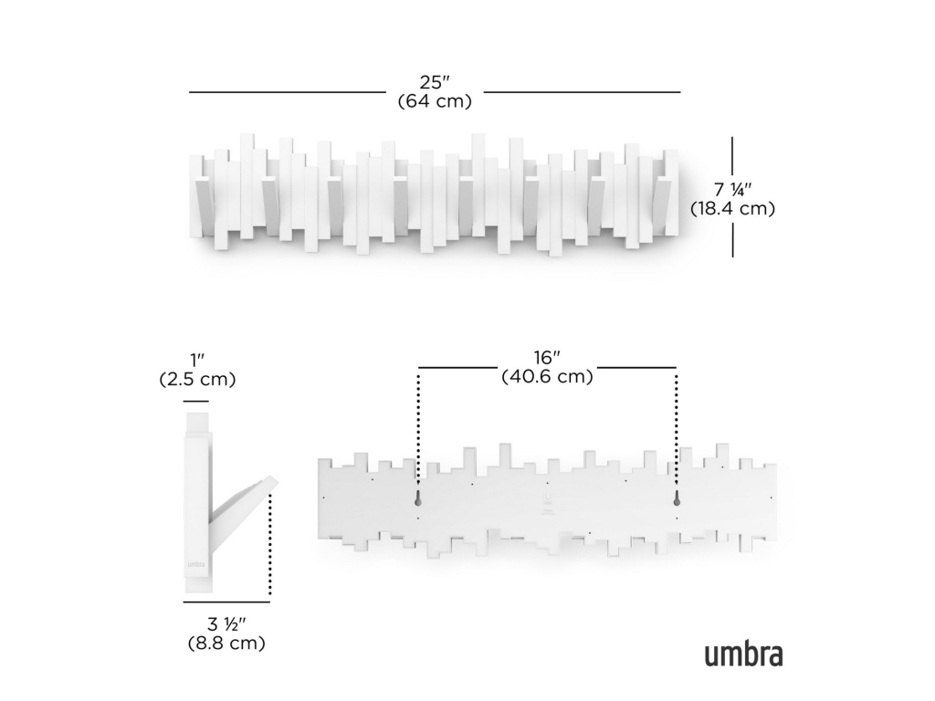 Umbra Sticks Multi Hook je důkazem, že i praktické doplňky mohou být skutečným designovým prvkem. Tento originální nástěnný věšák na první pohled působí jako moderní socha nebo dekorace, teprve při bližším pohledu odhalíte jeho promyšlenou funkci – osm skrytých háčků, které se snadno vyklápějí podle potřeby. Každý z nich unese až 2,3 kg, a když nejsou používány, elegantně splynou s povrchem věšáku a vytvářejí čistý, minimalistický vzhled.