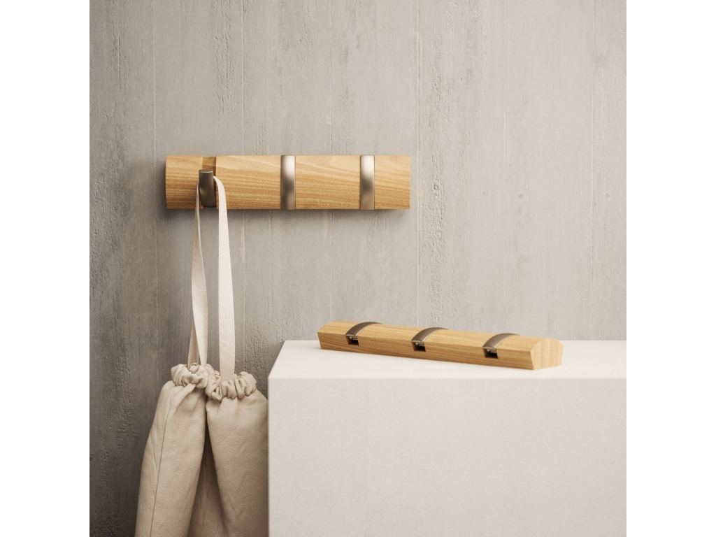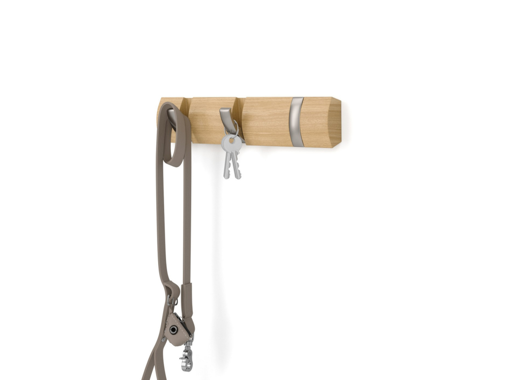 Nástěnný výklopný věšák s 3 háčky Umbra Flip - přírodní