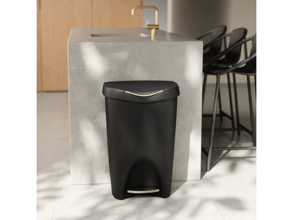 Umbra Brim Trash Can přináší moderní design, funkčnost a kvalitu v jednom. Díky elegantním konturám a saténovému povrchu se stane stylovým doplňkem vaší kuchyně či kanceláře. Robustní pedál z nerezové oceli aktivuje inovativní systém tichého dovírání víka, zatímco vnitřní kroužek bezpečně drží pytel na místě a zároveň jej skryje. Široký otvor zajišťuje snadné vynášení odpadu a díky konstrukci z polypropylenu je koš odolný, lehký a snadno omyvatelný. Objem 50 l poskytuje dostatek prostoru pro každodenní použití – ideální pro domácnosti i komerční prostory.