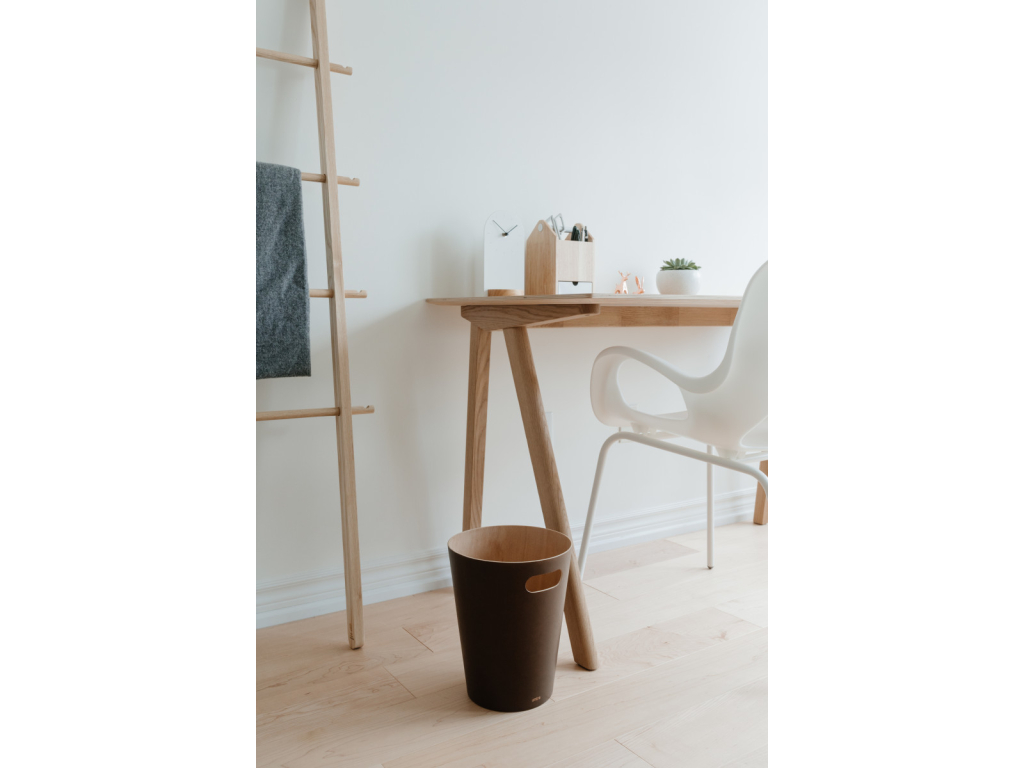 Umbra Woodrow je stylový odpadkový koš, který spojuje funkčnost a moderní vzhled. Díky přírodnímu dřevu s lakovaným vnějším povrchem působí útulně a originálně. Integrované úchyty umožňují snadné přenášení a jeho zakřivený tvar z něj dělá nejen praktický, ale i dekorativní prvek v každé místnosti.