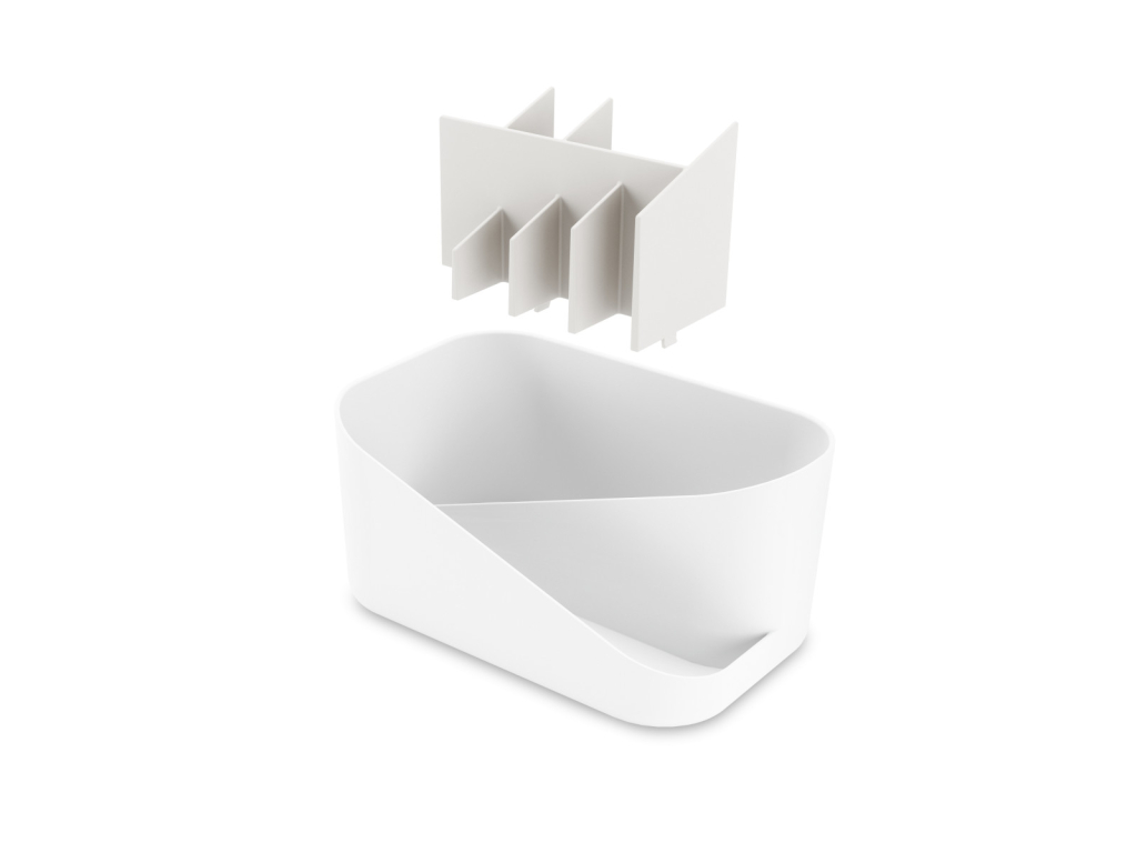 Umbra Glam Cosmetic Organizer okamžitě vnese do vaší kosmetické rutiny pořádek i styl. Tento praktický organizér na make-up nabízí několik přihrádek různých velikostí, které umožní přehledné uložení vašich každodenních produktů – od štětců a rtěnek až po krémy či lahvičky. Díky otevřenému hornímu designu máte vše na očích a po ruce. Odnímatelná vložka navíc poskytuje flexibilitu pro přizpůsobení úložného prostoru podle potřeby. Glam se hodí na toaletní stolek, koupelnovou desku nebo pod umyvadlo, kde pomáhá udržet pořádek a šetří místo. Perfektně ladí s Umbra Glam Hair Tool Organizerem – společně tvoří stylový a praktický set, který potěší i jako dárek.