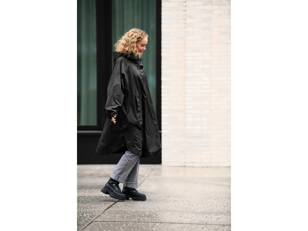 Pláštěnku lze po použití jednoduše složit do přiloženého pouzdra se stahovací šňůrkou. Díky kompaktní velikosti ji můžete mít vždy připravenou v kabelce nebo batohu.