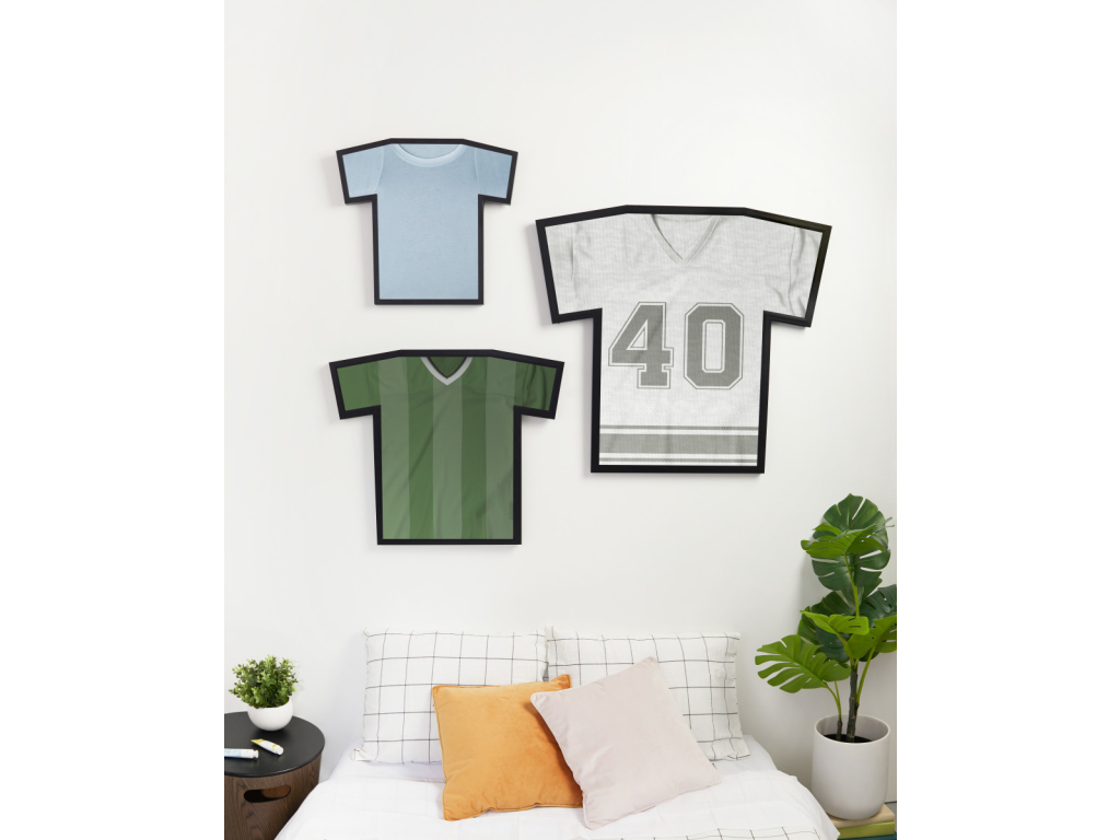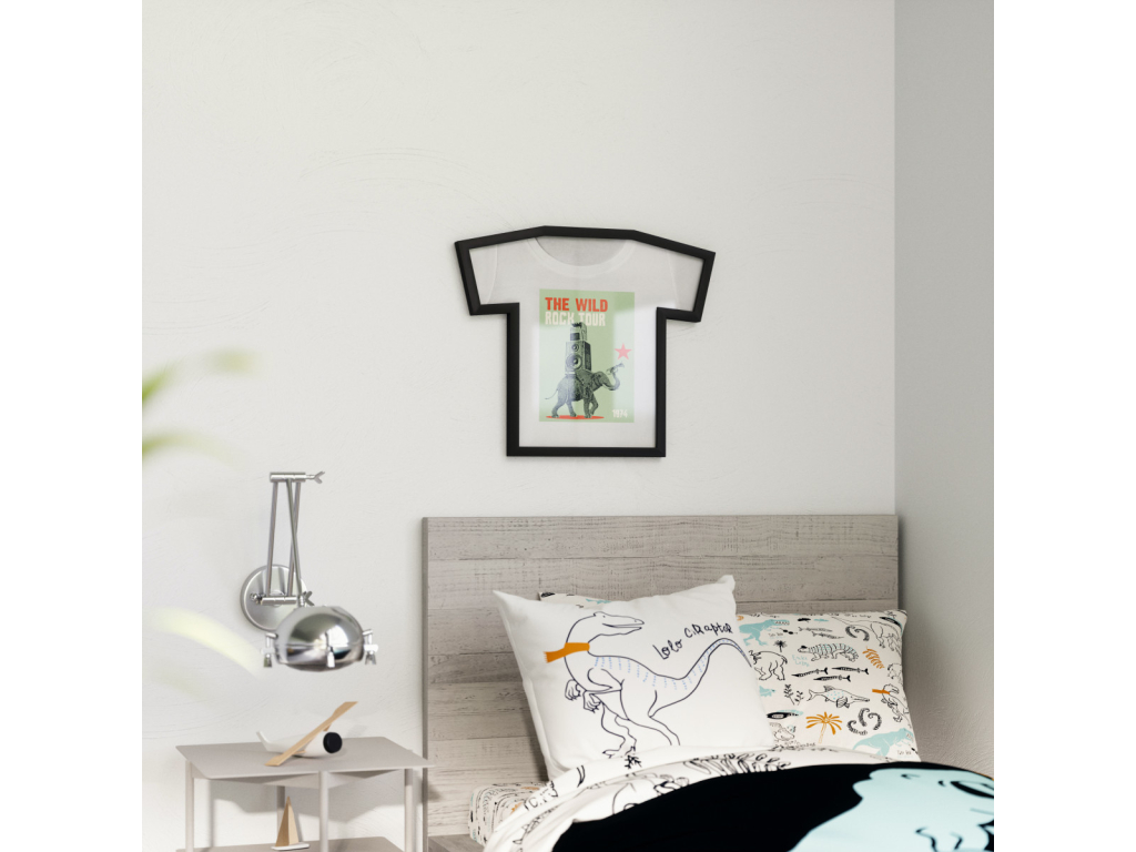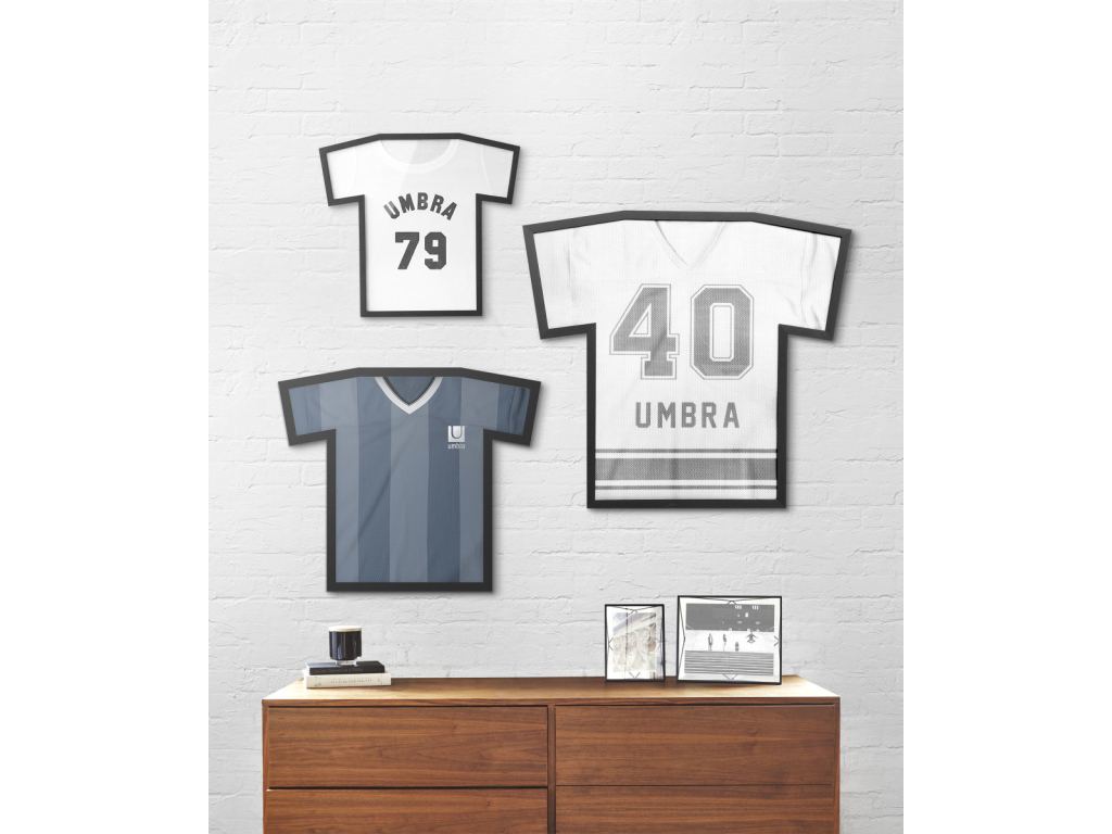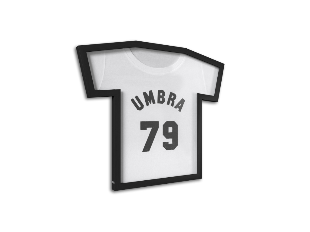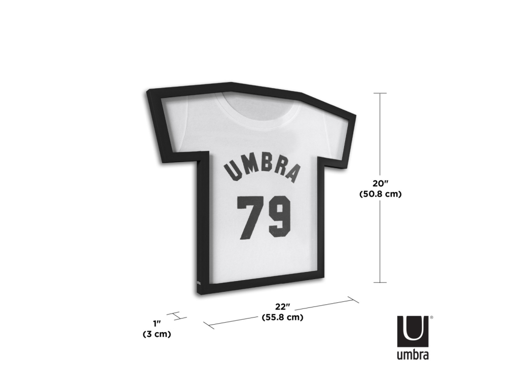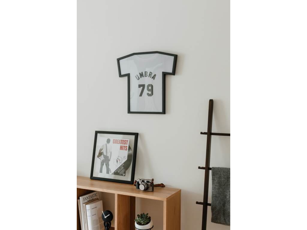 Umbra T-Frame Small je originální rám navržený ve tvaru trička, ideální pro menší dresy, koncertní nebo grafická trička. Díky přiložené skládací šabloně snadno tričko zarovnáte tak, aby vypadalo dokonale, bez prověšení a poškození. Vyrobený z odolného akrylu chrání vystavené textilie před prachem a zachovává jejich čistý vzhled. Skvělý doplněk do obývacího pokoje, ložnice nebo herny, který z každého oblíbeného trička udělá designový kousek.