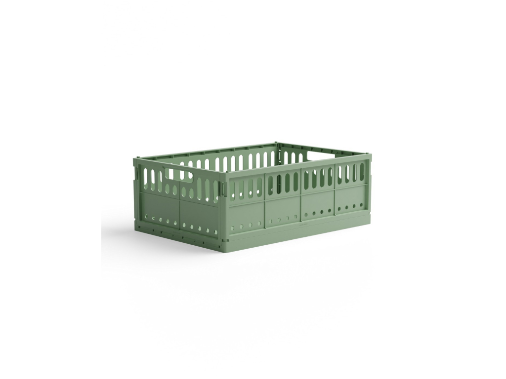 Vyrobeno pro skladování. Nové ekologické skládací přepravky jsou vyrobeny ze 100% recyklovaného plastu, který neobsahuje škodlivé látky. Kolekce Made Crate se skládá z 20 krásných pastelových barev.