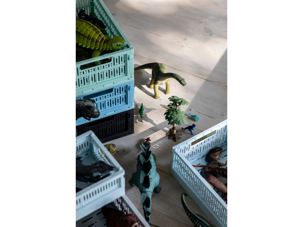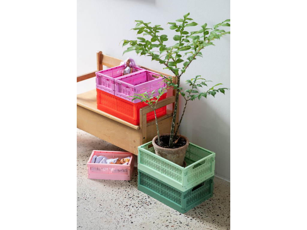 Vyrobeno pro skladování. Nové ekologické skládací přepravky jsou vyrobeny ze 100% recyklovaného plastu, který neobsahuje škodlivé látky. Kolekce Made Crate se skládá z 20 krásných pastelových barev.