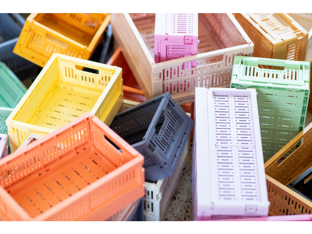 Vyrobeno pro skladování. Nové ekologické skládací přepravky jsou vyrobeny ze 100% recyklovaného plastu, který neobsahuje škodlivé látky. Kolekce Made Crate se skládá z 20 krásných pastelových barev.