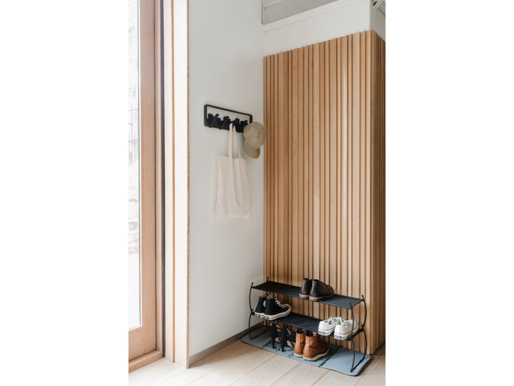 - Úspora prostoru – sklápěcí háčky se po použití zasunou zpět