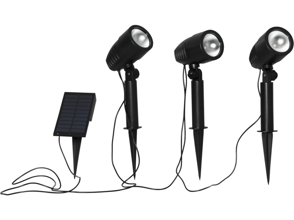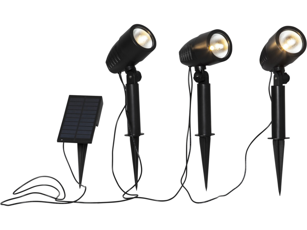 Solární LED reflektor 3 ks výška 26 cm Star Trading Powerspot - černý