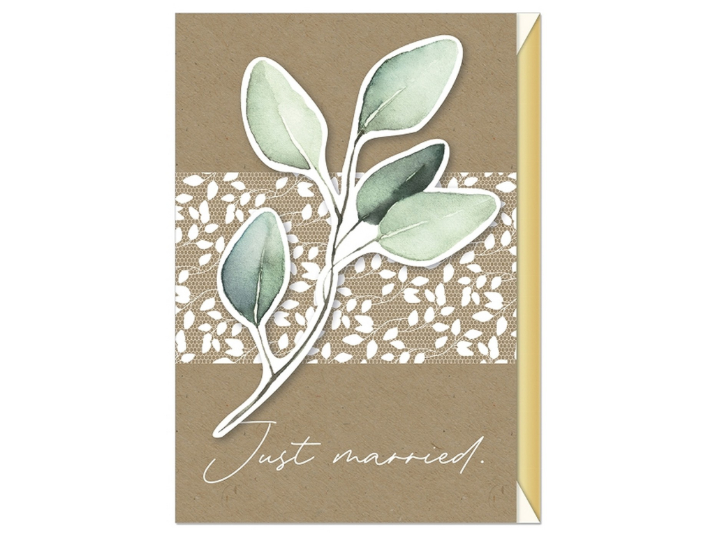 Svatební přání s obálkou Artebene Just Married Eucalyptus