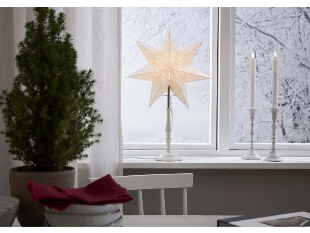 Svítící hvězda na stojánku výška 55 cm Star Trading Romantic - bílá