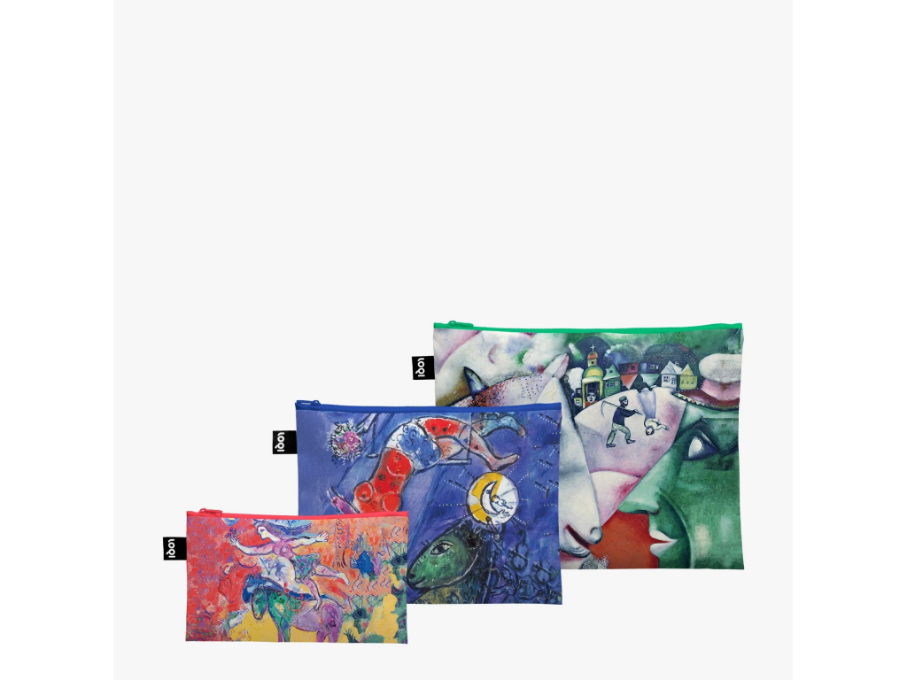 Taštičky na zip 3 ks LOQI MARC CHAGALL I and the Village, Blue Circus