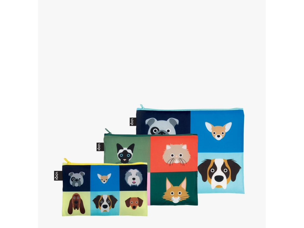Taštičky na zip 3 ks LOQI STEPHEN CHEETHAM Dogs & Cats