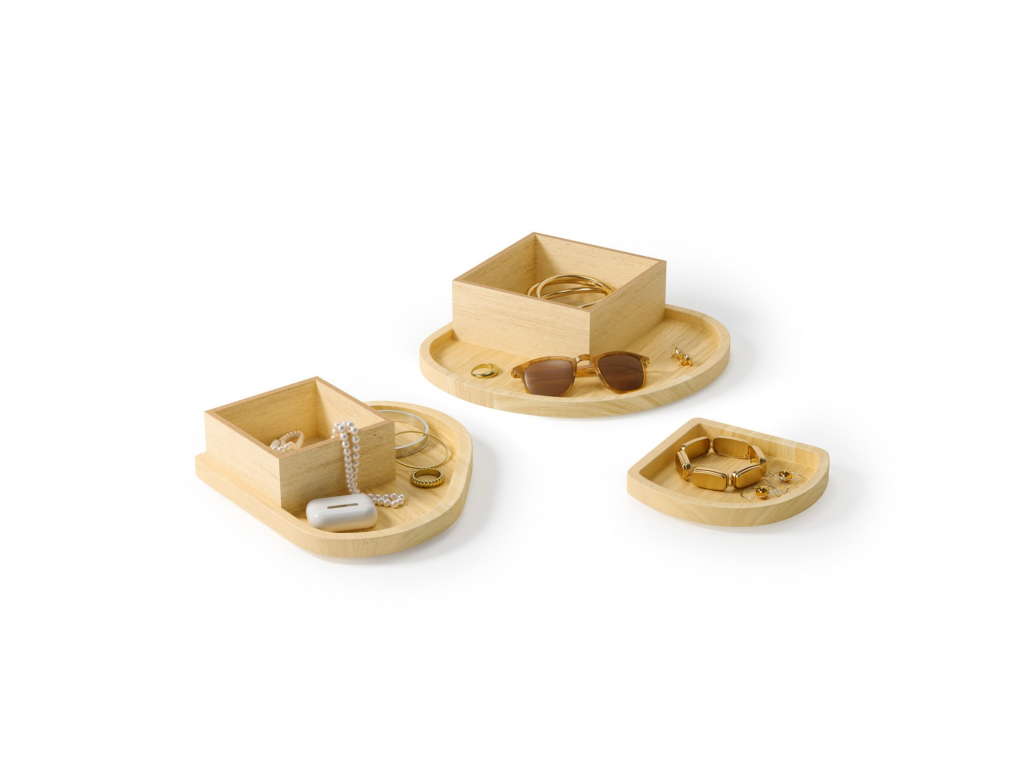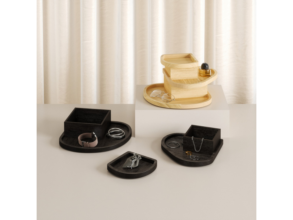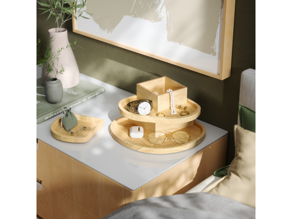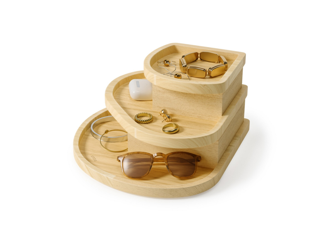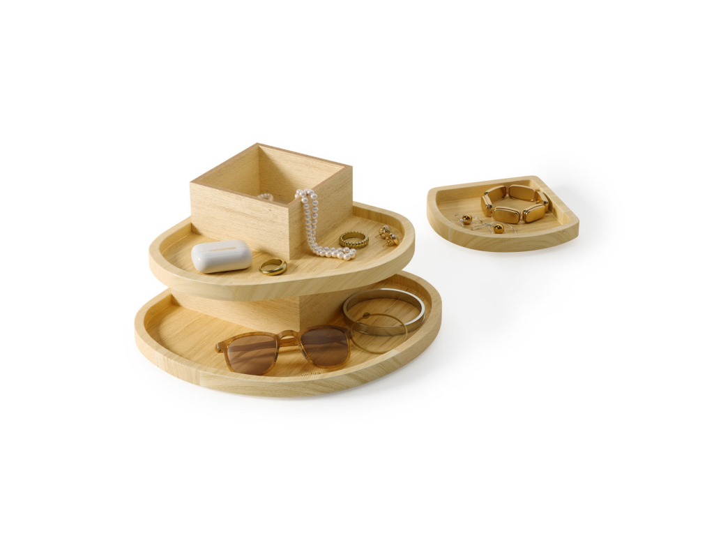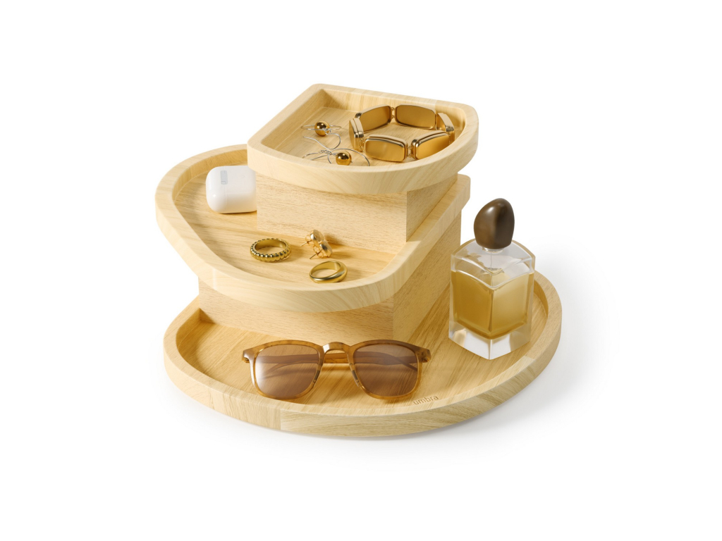 Umbra Cove je stylové a promyšlené řešení pro ukládání šperků a doplňků. Tři samostatné vrstvy s ukrytými přihrádkami pomáhají udržet vše přehledně uspořádané, chráněné a vždy snadno dostupné.
