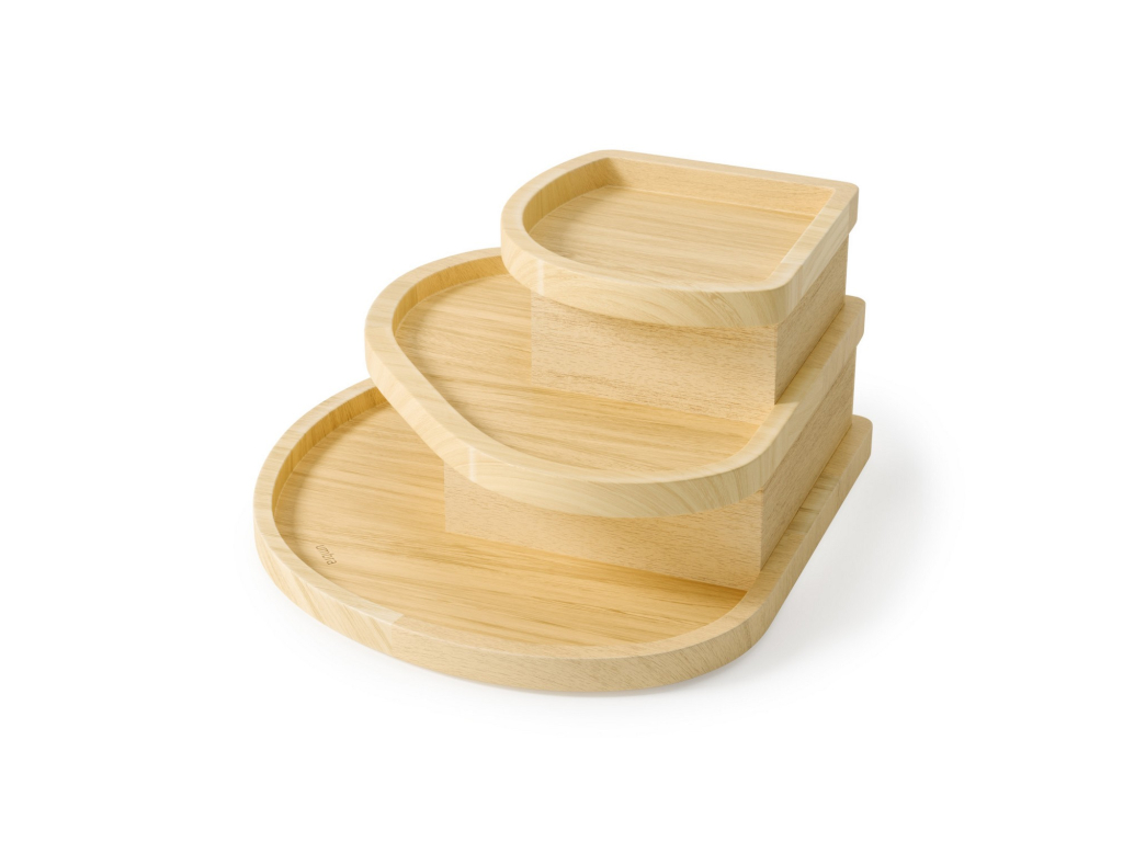 Praktický stohovatelný design umožňuje jednotlivé části skládat na sebe pro úsporu místa, nebo je používat samostatně podle potřeby. Protiskluzové nožky navíc chrání povrch nábytku a zajišťují stabilitu.