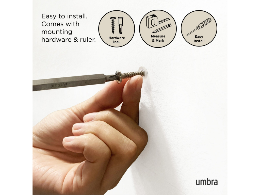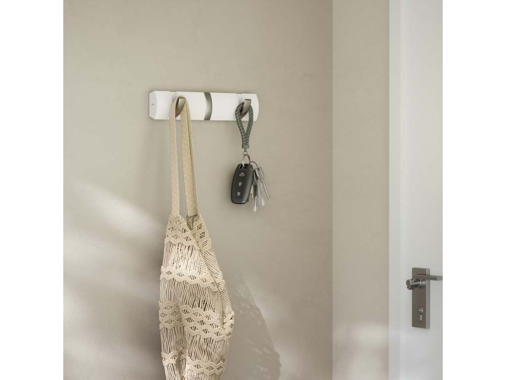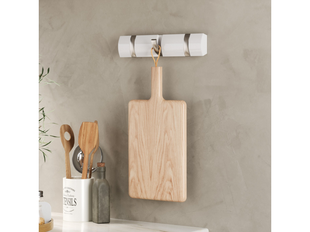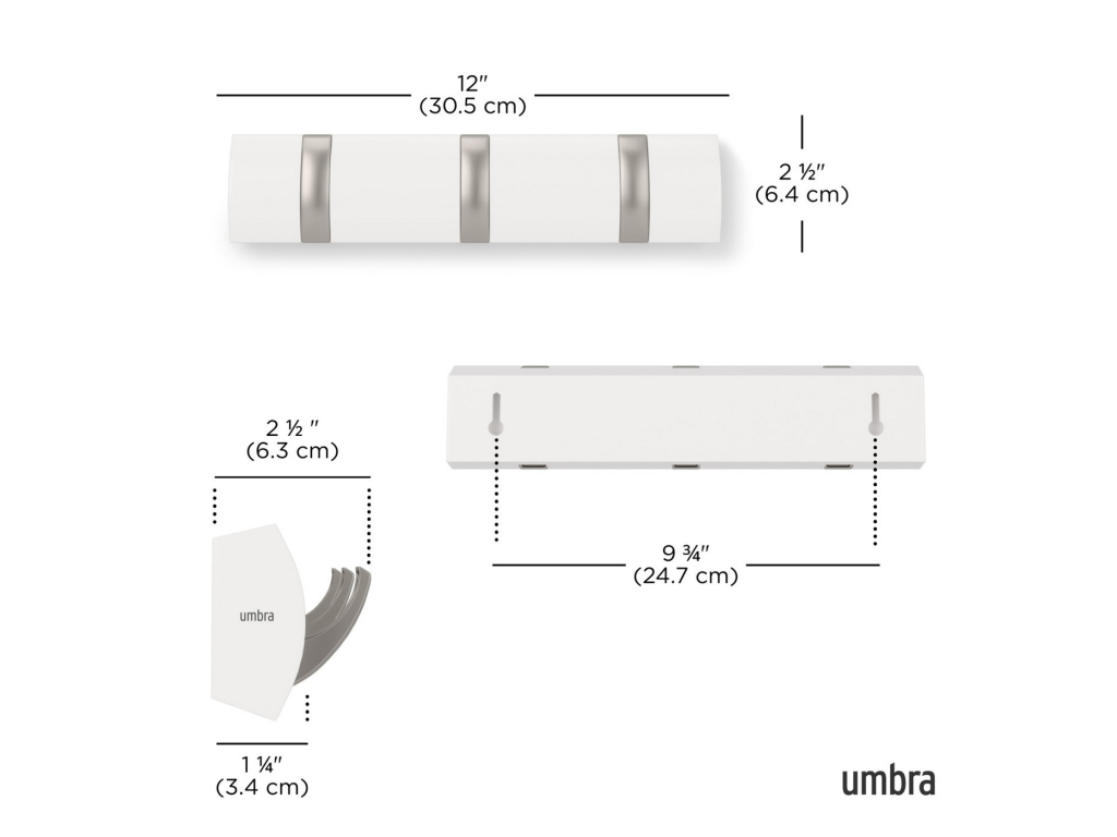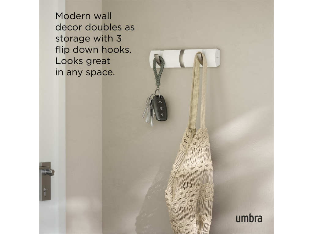 Umbra Flip Hook 3 je moderní nástěnný věšák s chytrým systémem výklopných háčků, které se po použití snadno zasunou zpět a vytvoří tak čistý, minimalistický vzhled. Díky své kompaktní velikosti je ideální do menších prostor, kde každý centimetr hraje roli – předsíní, koupelen, ložnic nebo kanceláří. Každý háček unese až 2,3 kg (5 lbs) a poskytne praktické místo pro kabáty, tašky, ručníky i doplňky. Skryté uchycení zajišťuje elegantní vzhled bez viditelných šroubů. Vyrobeno ze dřeva z obnovitelných zdrojů s přirozenou kresbou, která dává každému kusu originální charakter.