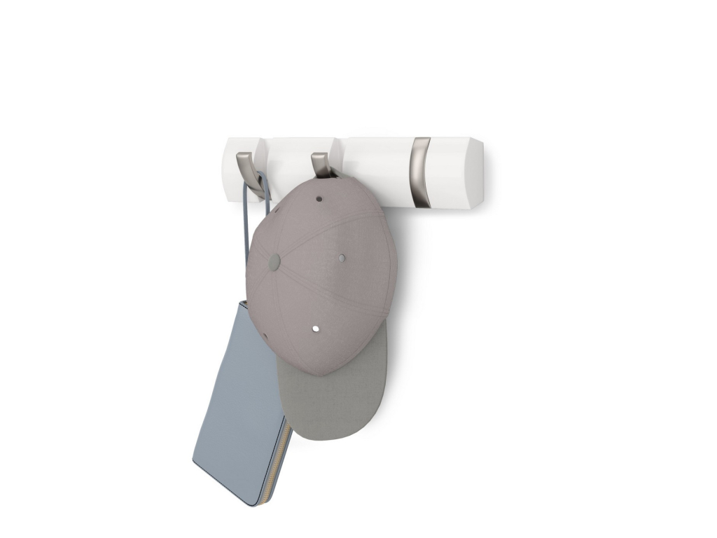 - Úspora prostoru – háčky se po použití zasunou a věšák působí nenápadně