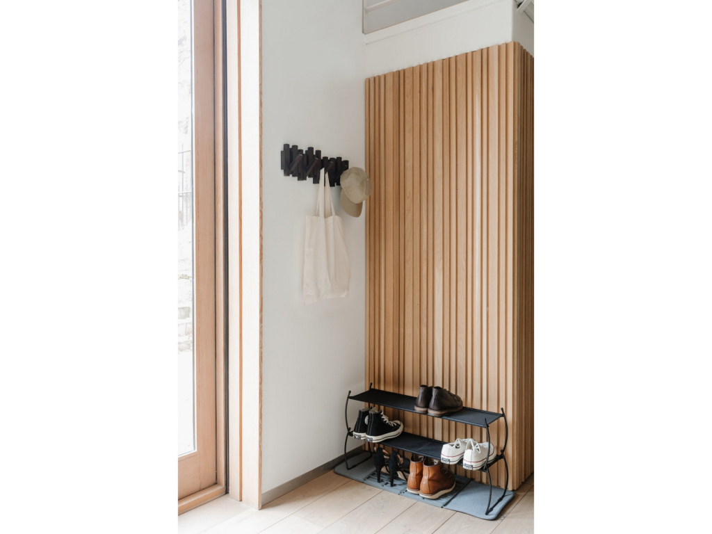 Umbra Sticks Multi Hook je moderní nástěnný věšák, který na první pohled působí jako designová plastika, ale skrývá praktickou funkci. Pět výklopných háčků s nosností až 2,3 kg (5 lbs) každý poskytuje dostatek prostoru pro kabáty, šály, tašky nebo doplňky. Když háčky nepoužíváš, jednoduše se zaklapnou zpět a vytvoří čistý a minimalistický vzhled. Vyroben z recyklovaných plastů a snadno se instaluje – ideální do předsíně, ložnice či kanceláře. Stylový detail, který potěší oko i usnadní život.