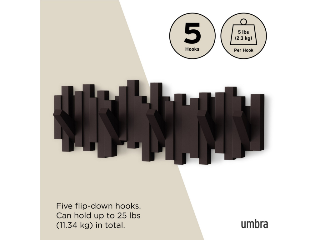 Umbra Sklápěcí nástěnný věšák Sticks, espresso