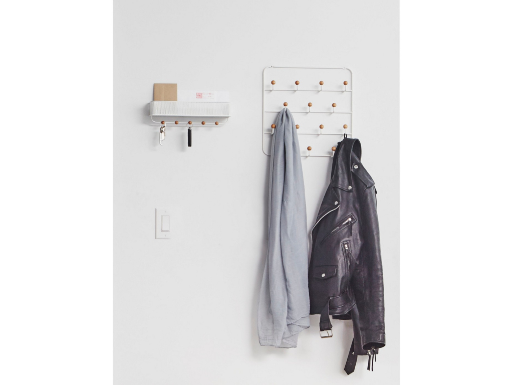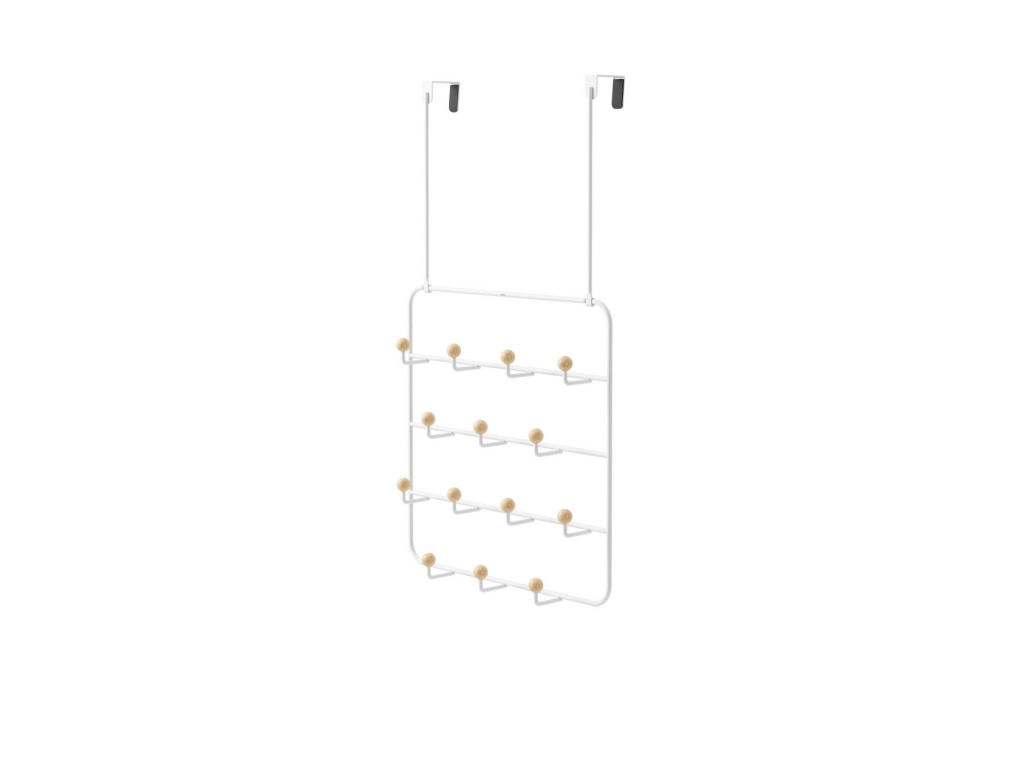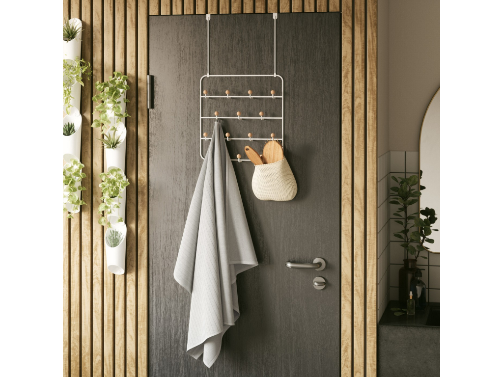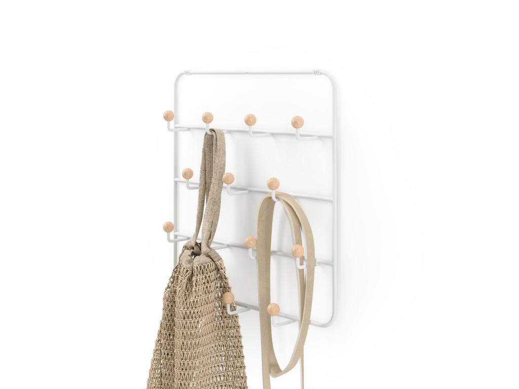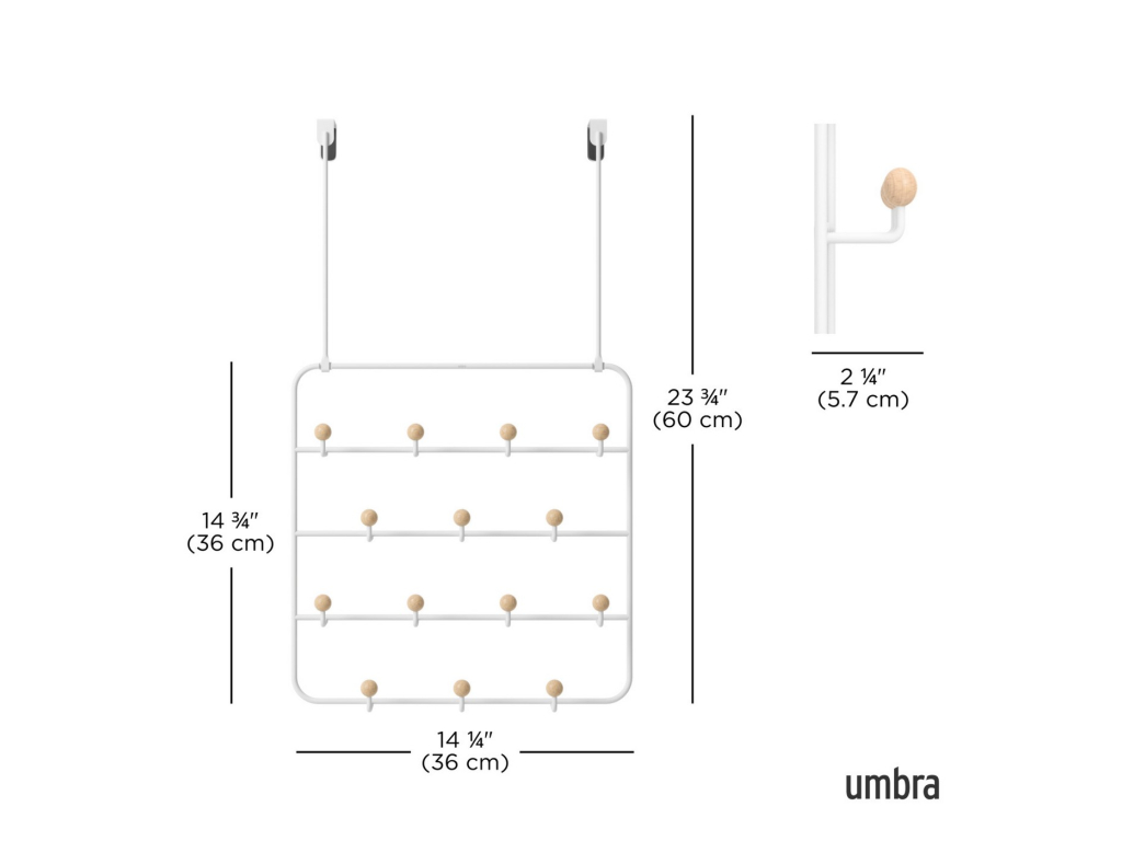 Umbra Estique je praktický organizér s 14 háčky, který pomůže udržet pořádek a mít všechny nezbytnosti vždy po ruce. Dřevěné kuličky na konci háčků chrání jemné tkaniny před zatrhnutím a zároveň dodávají věšáku teplý a moderní vzhled. Díky univerzálnímu uchycení ho můžete snadno pověsit na dveře nebo připevnit přímo na stěnu.
