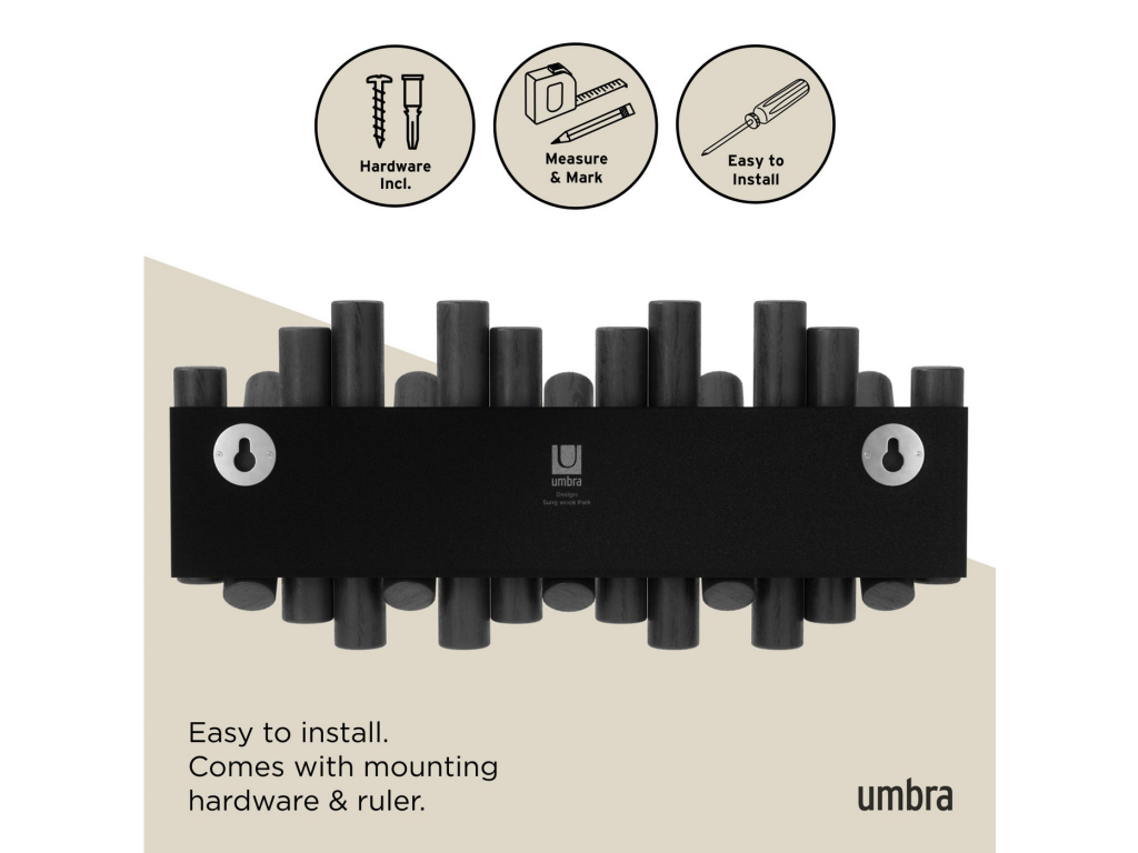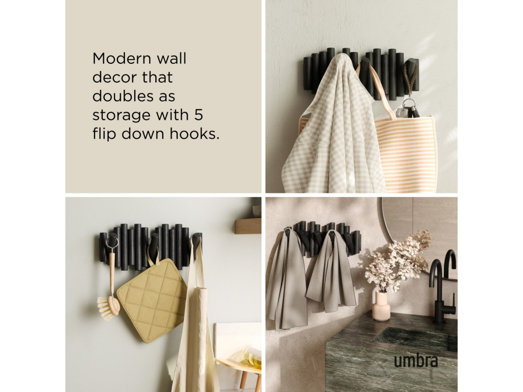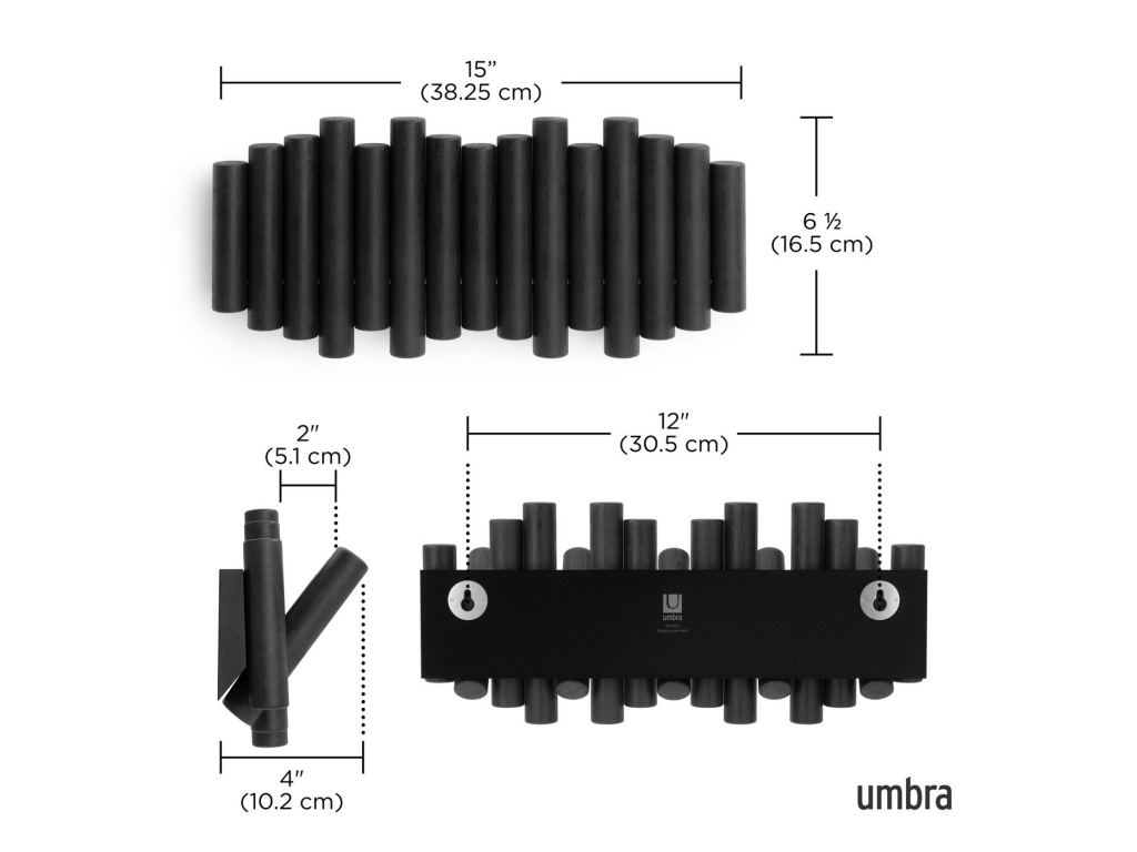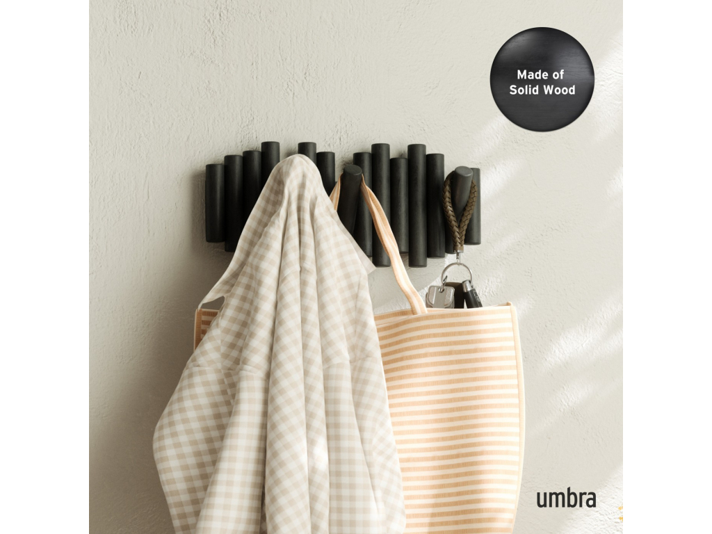 Umbra Picket je více než jen věšák – je to designový prvek, který přidá vašemu interiéru hřejivost a charakter. Je vyroben z krásně opracovaného borovicového dřeva a nabízí pět sklopných háčků, z nichž každý unese až 2,3 kg. Když háčky nepoužíváte, jednoduše je sklopíte a Picket se promění v elegantní dřevěnou dekoraci s čistým profilem. Perfektní do předsíně, ložnice nebo i kanceláře. Díky jedinečné kresbě dřeva je každý kus originál a můžete ho kombinovat i ve více kusech pro vytvoření praktického a dekorativního uspořádání na stěně.